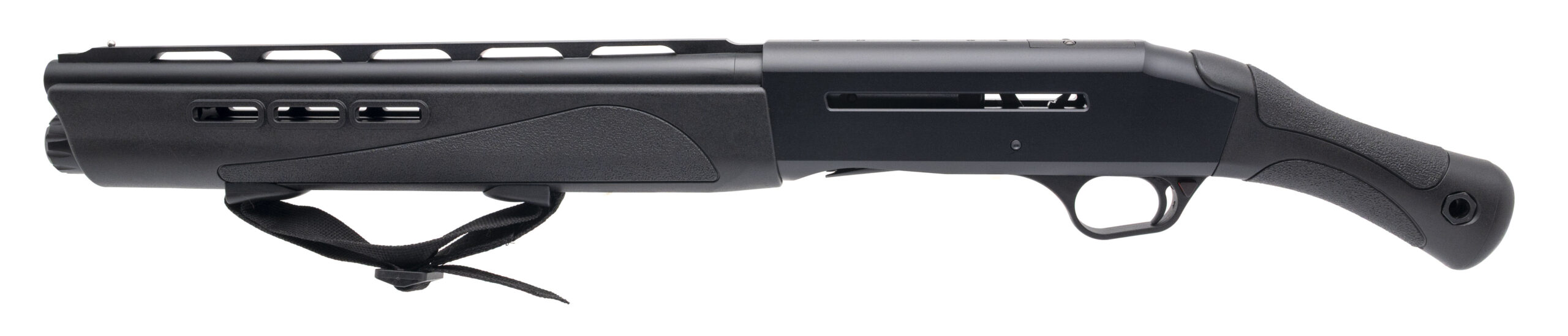 Semi-Auto Tactical Shotgun with a 14" Vent Rib Cyl. Bore Barrel Chambered for 3" Shells. Tapped Receiver for MOS Optics or 1913 Picatinny Rail, Matte Black Finish, and Polymer Pistol Grip & Forend w/MLOK Slots. NEW. UPC: 818004025802