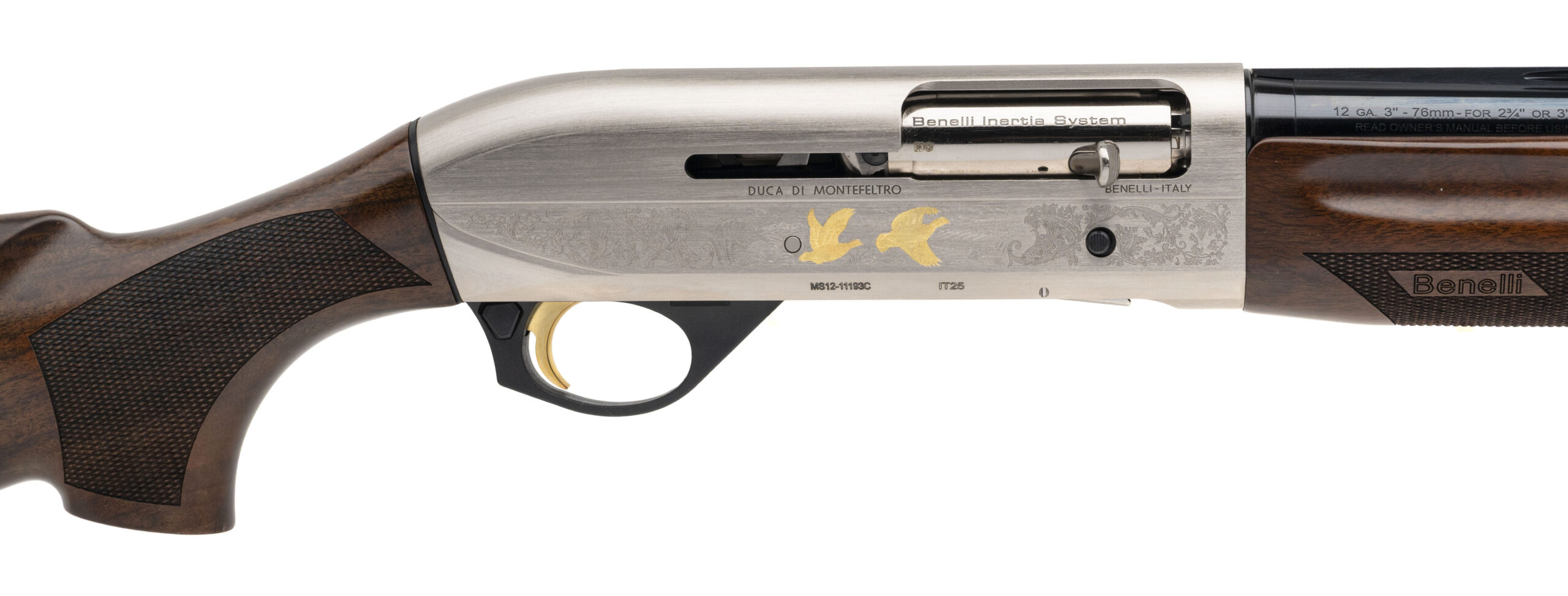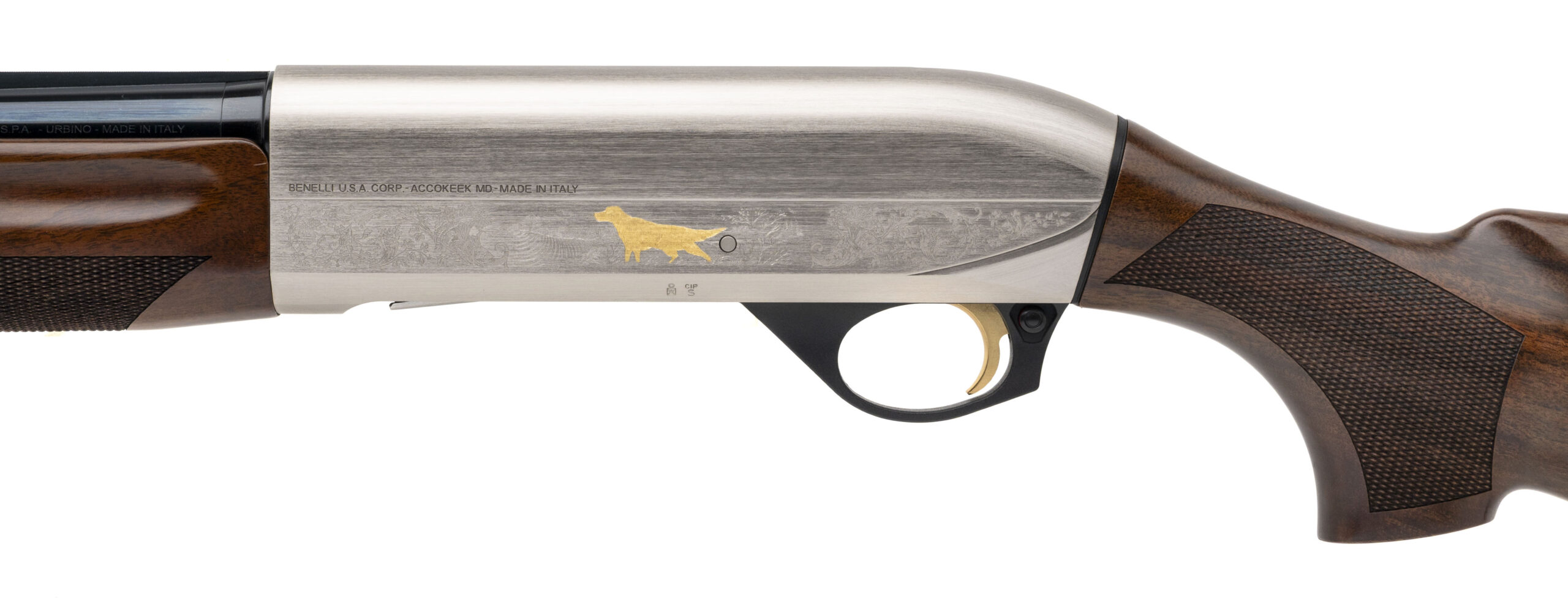 Semi-Auto Sporting Shotgun with a 28" Vent Rib Barrel w/Removable Choke Chambered for 2 3/4" & 3" Shells. Fiber-Optic Front Sight, Engraved Nickel Receiver w/Gold Accents, Polished Blue Finished Barrel, and Deluxe Grade Checkered Wood Stock & Forend with a 14.5" LOP. Includes Additional Chokes. NEW. UPC:650350108507