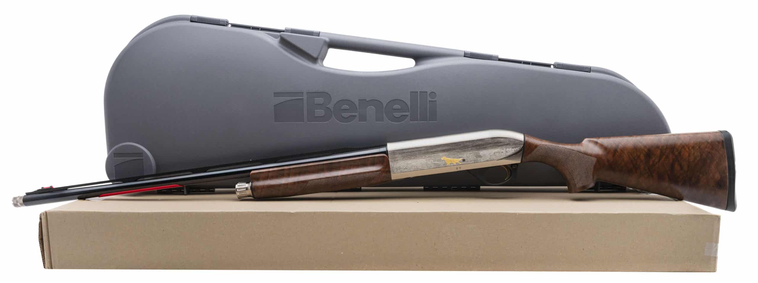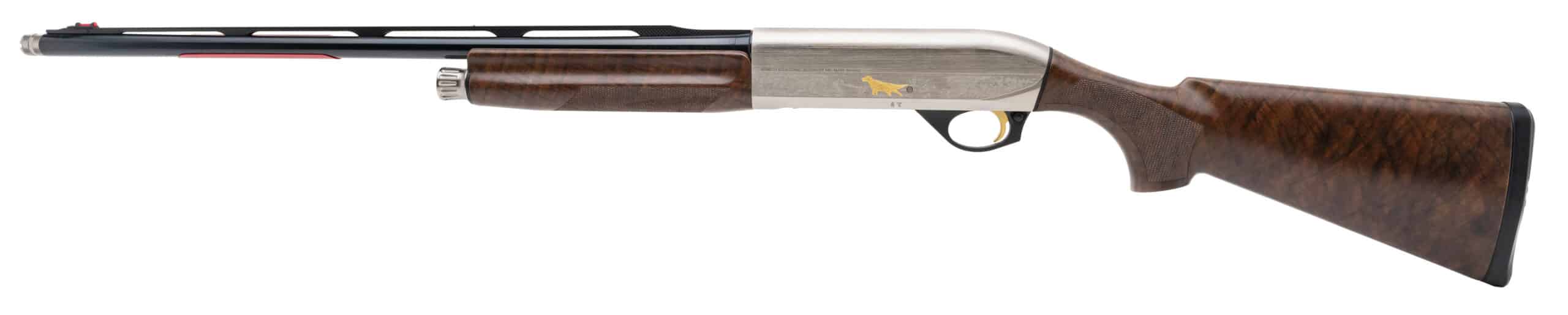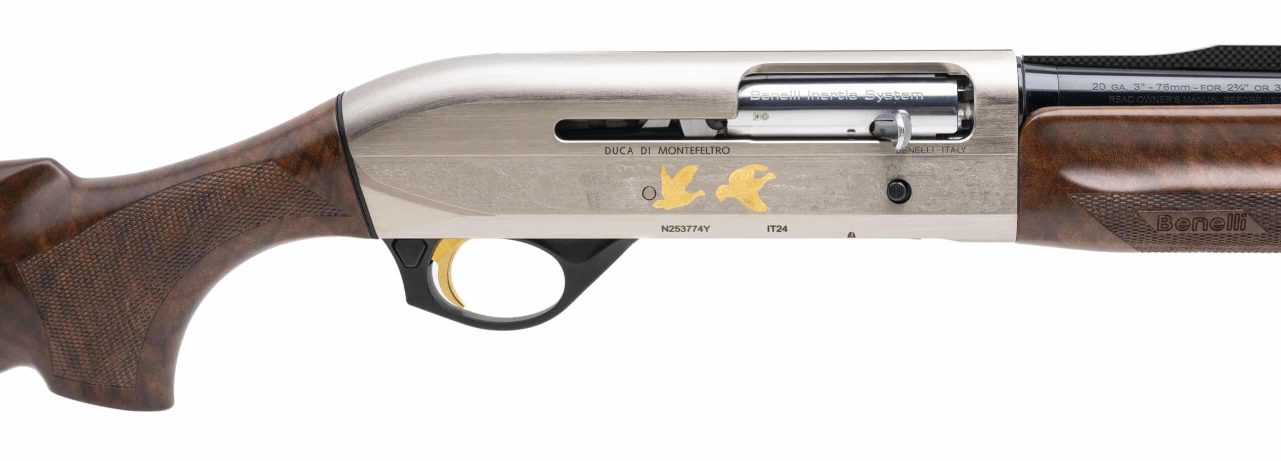 Benelli Montefletro Silver Featherweight Shotgun, 20 Gauge with a 24" vent rib barrel with removeable chokes. Semi-automatic field shotgun with a satin walnut wood stock, red bar front sight, and 14.5" LOP. New. UPC: 650350108194