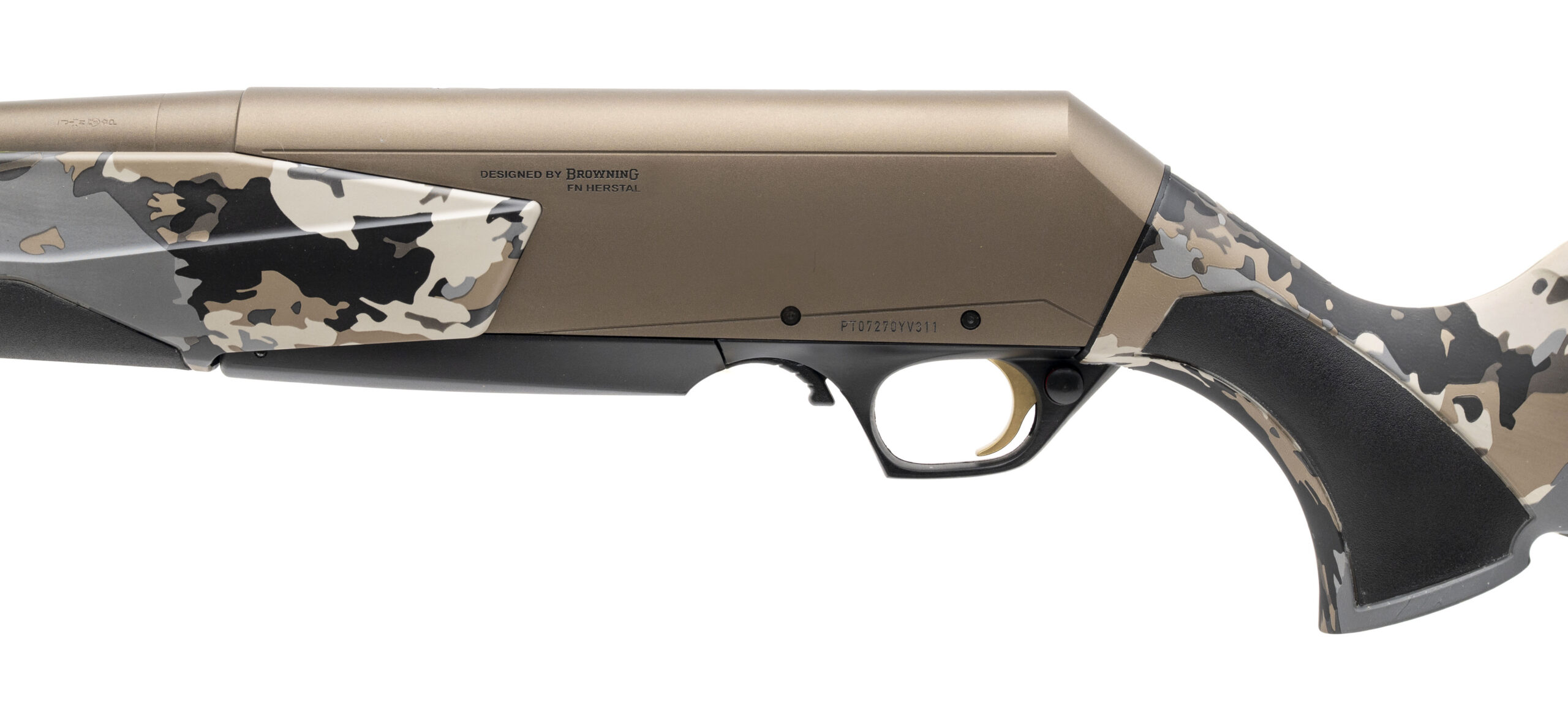 Semi-Automatic Hunting Rifle with a 22" Fluted Barrel. Smoked Bronze Cerakote Finish, and Browning OVIX Camouflage Stock w/Inflex Recoil Pad. NEW. UPC: 023614852421