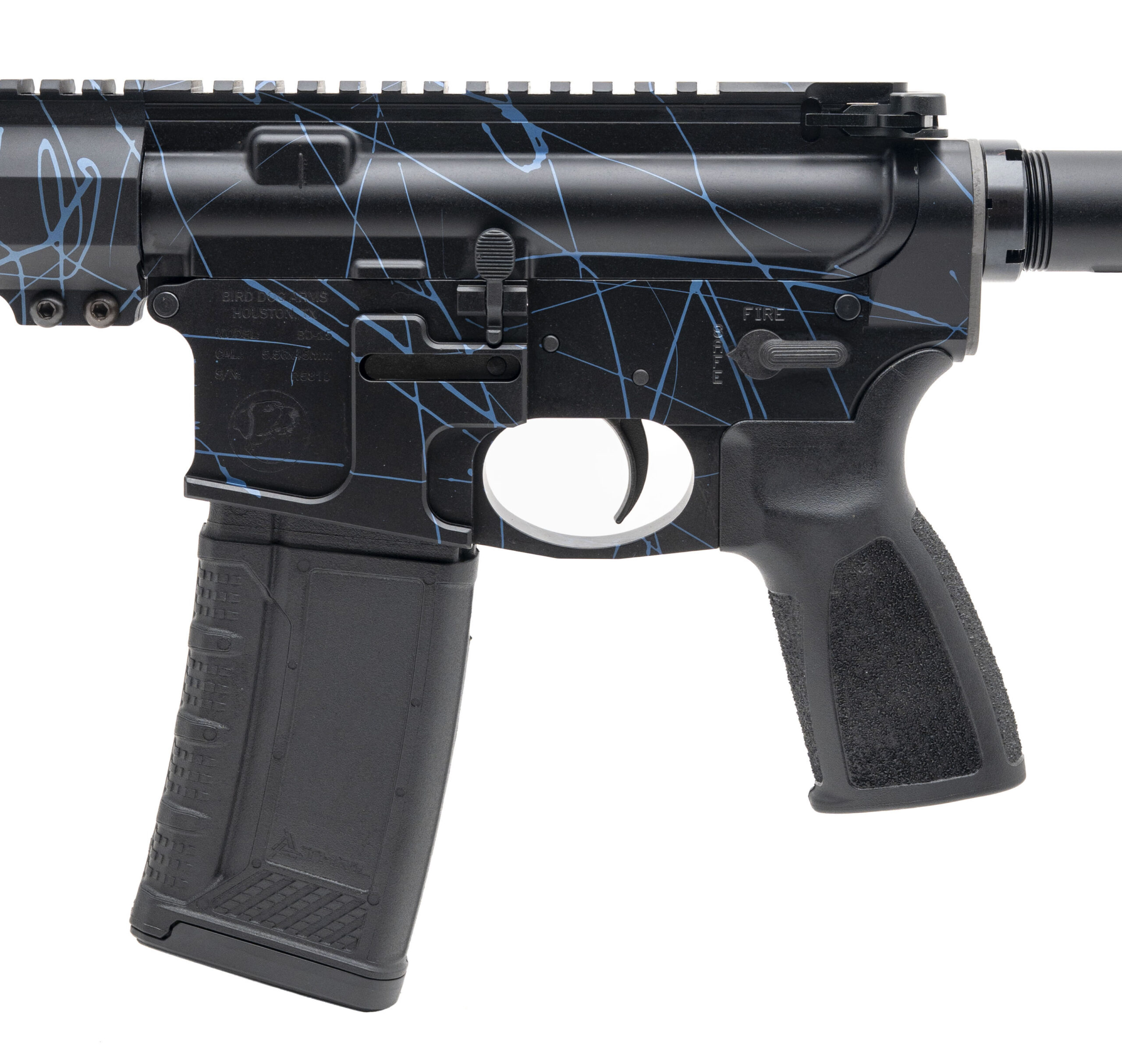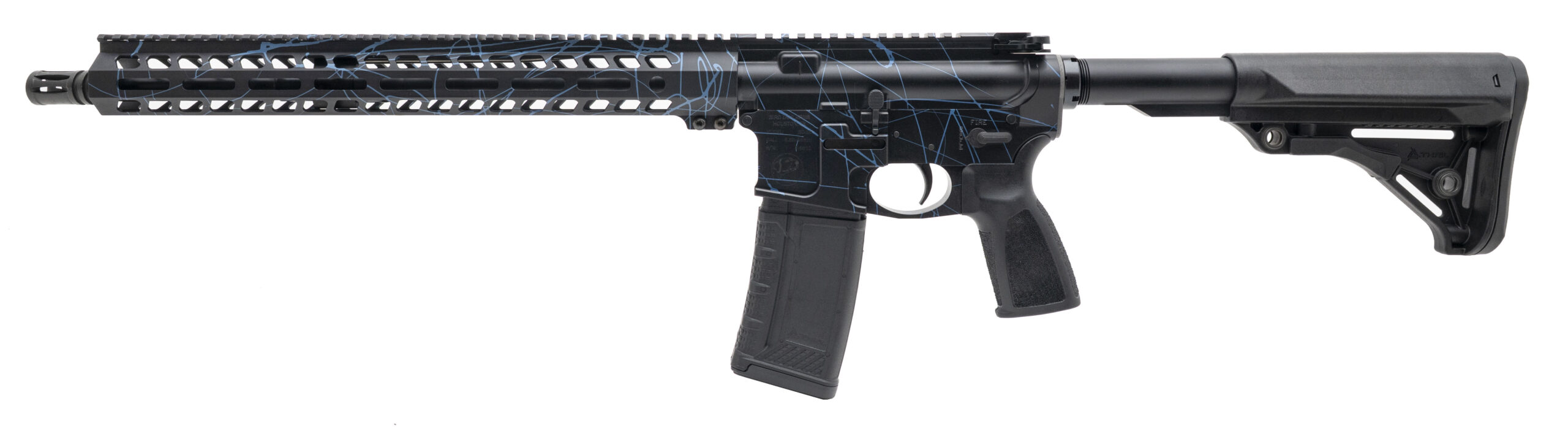 Bird Dog Arms BD-15 5.56 NATO with an 16" Barrel and Birdcage Flash Hider. Custom Riveting Blue Matrix Finish Semi-Auto Rifle accompanied with M-LOK Handguard and Thril Stock and Pistol Grip. 30rd Capacity. NEW.