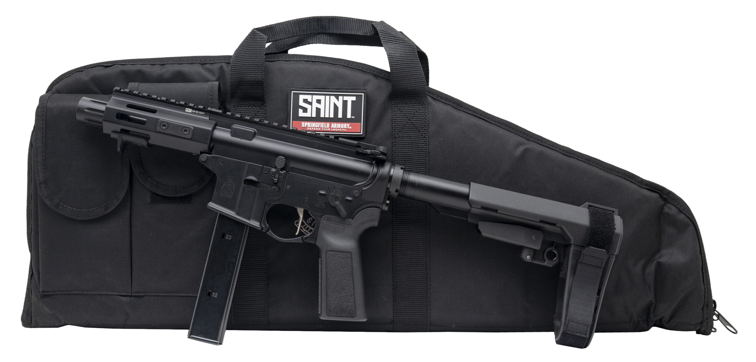 Tactical Pistol with a 5.5" barrel w/ SA Blast Diverter. Black Anodized Finish, MLOK Forend, Picatinny Rail, and SB Tactical Brace. Includes SA Range Bag. NEW. UPC: 706397940706