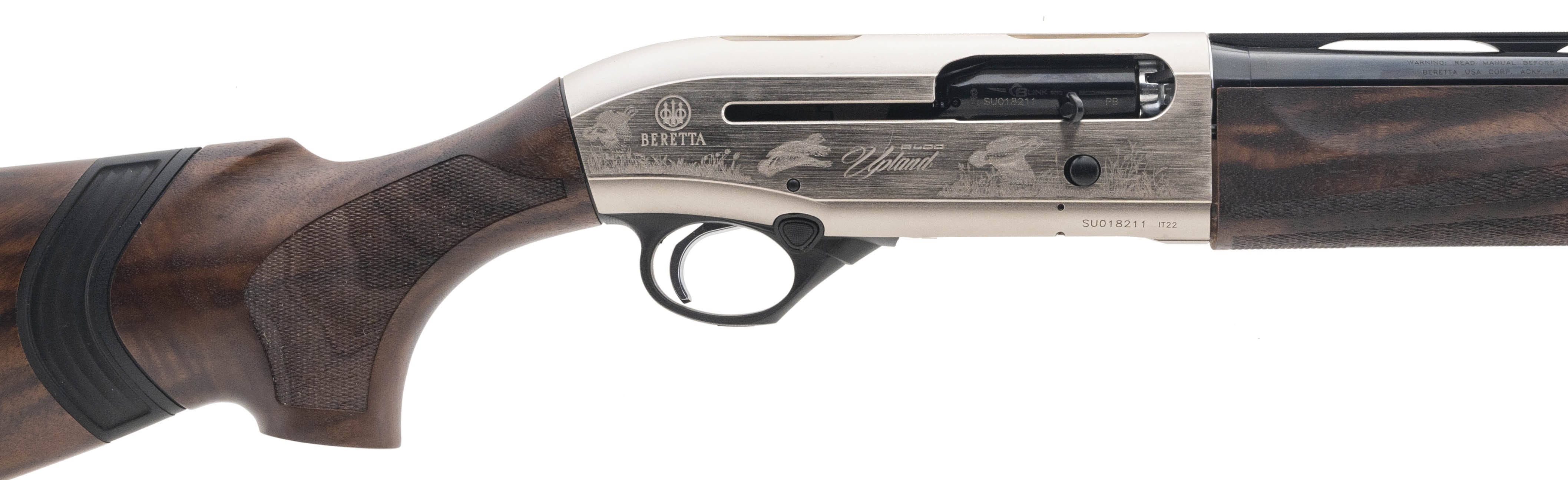Semi-Auto Field Shotgun with a 26" Vent Rib Barrel w/Removable Choke Chambered for 2 3/4" & 3" Shells. Blued Finish, Engraved Silver Receiver, and a Walnut Wood Stock with a 14.5" LOP. NEW. UPC: 082442923772