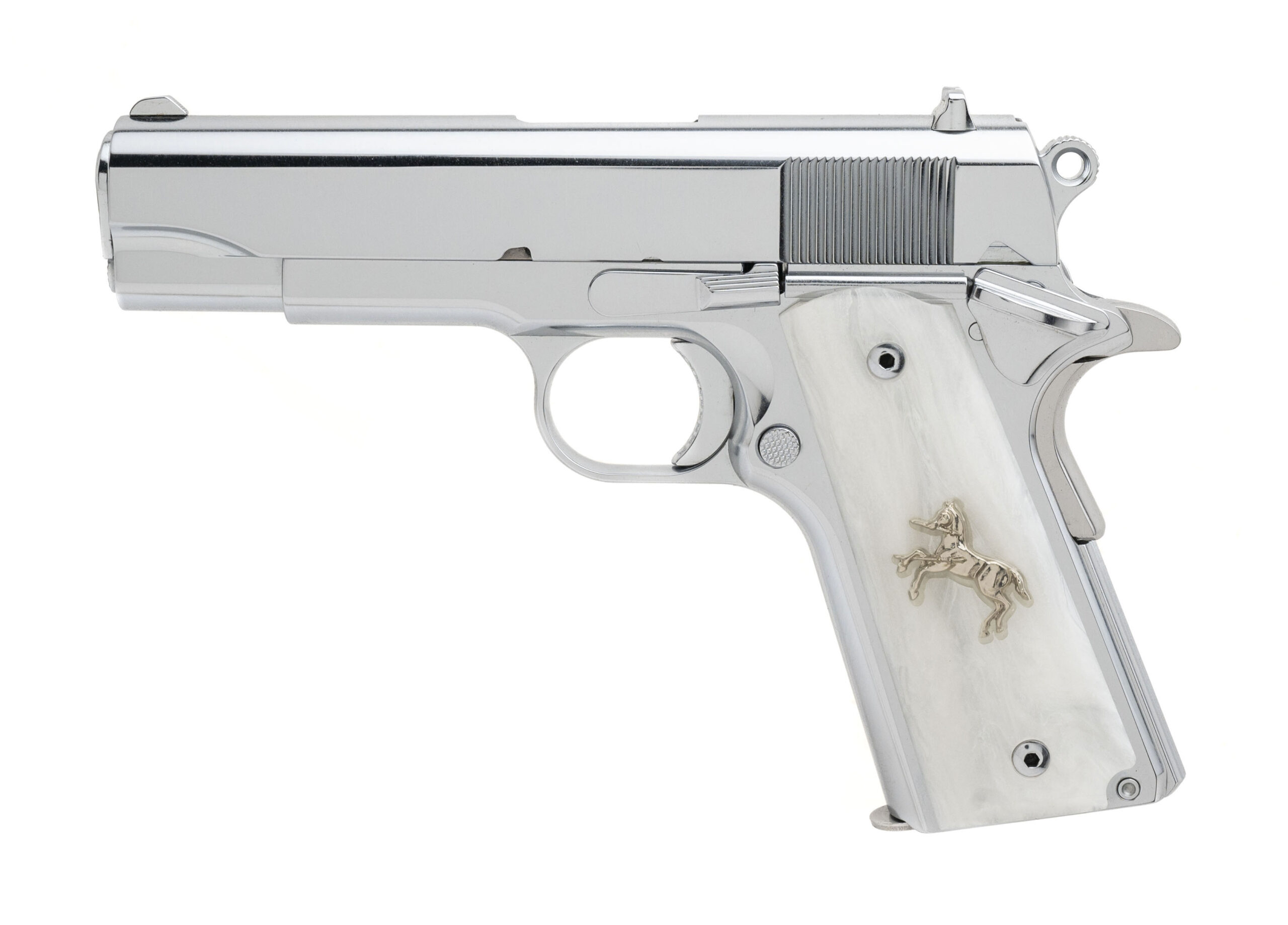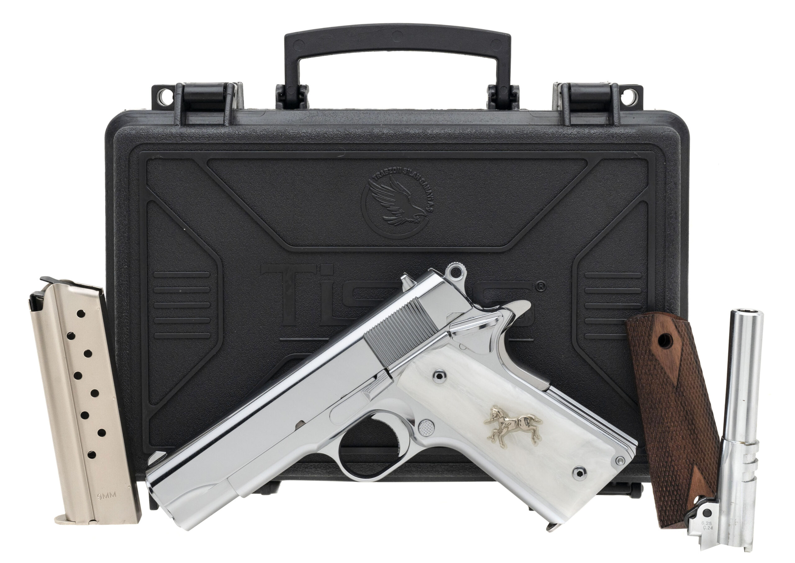 Tisas 1911A1 Desperado Pistol. .38 Super with an 4.25" barrel. Single action steel frame pistol with an Polished Chrome finish, Fancy Stallion grips, and Enhanced GI sights. Includes 9mm barrel. NEW. UPC: 723551440575
