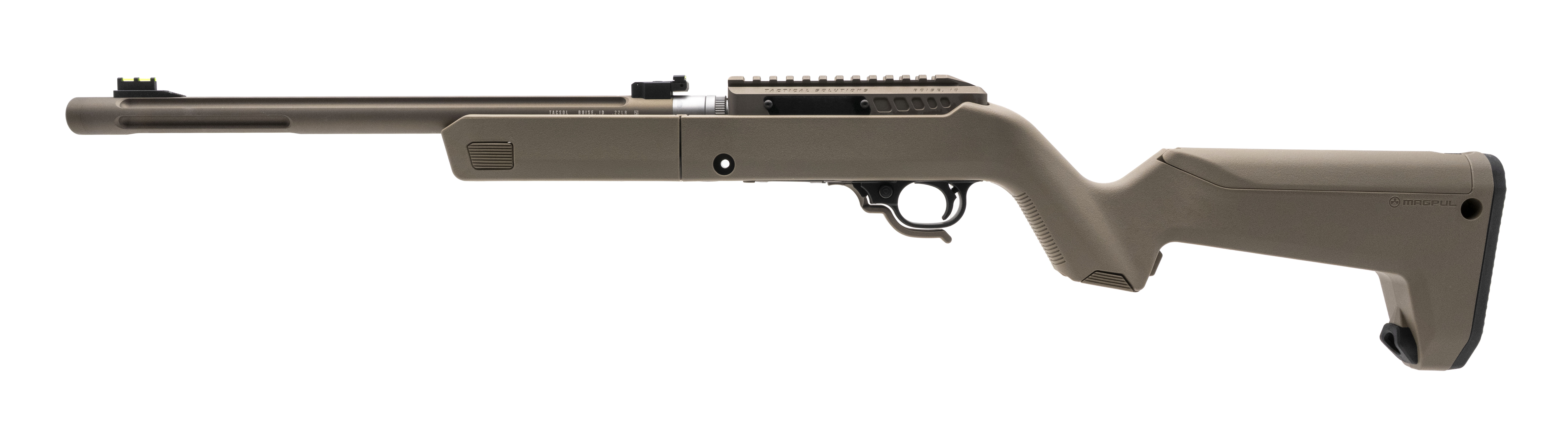 Take Down Rifle with a 16.5" Threaded Barrel. Semi-Automatic, Fluted Barrel, FDE Matte Finish, and Magpul Hunter Stock in FDE. Includes 1-10rd Ruger Magazine. NEW. UPC: 879971004627