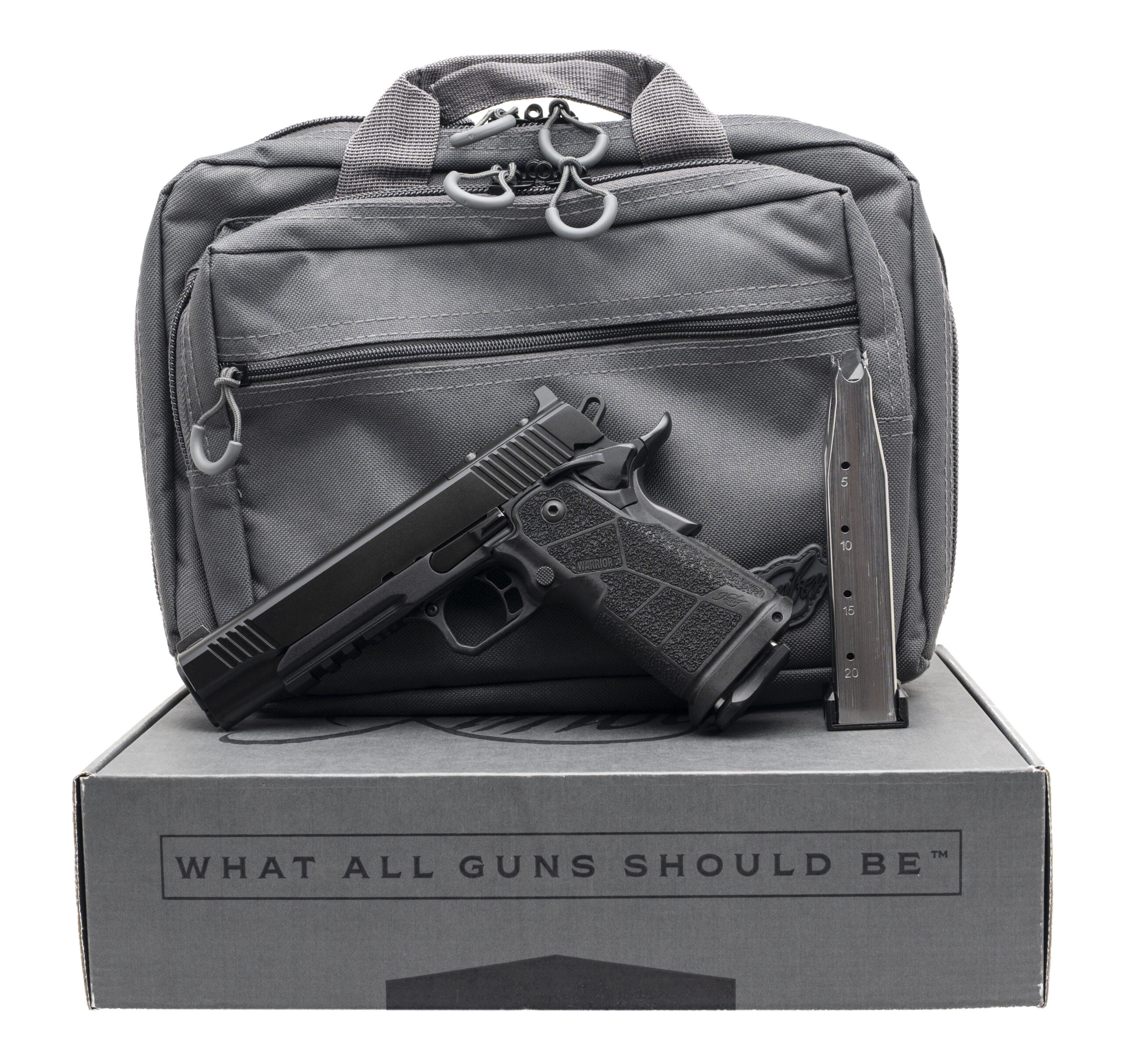 Double-Stack 1911 Style Pistol with a 5" Stainless Steel Crowned Barrel. Full Size, Alloy Frame, Optics Ready Slide, Tritium Front Sight, Ambidextrous Manual Thumb-Safety, Accessory Rail, KimPro Black Anodized Finish, and Carbon Fiber Infused Grip Module. Includes 1-17rd & 1-20rd Magazines. NEW. UPC: 669278363028(STOCK PHOTO)
