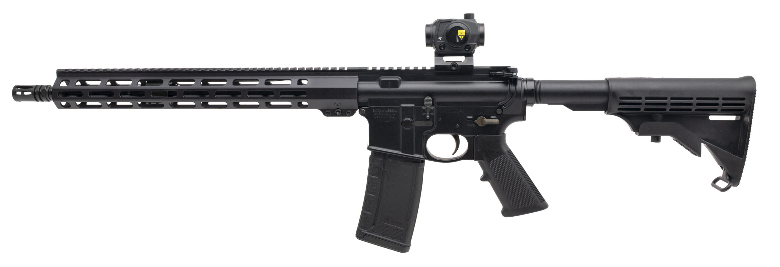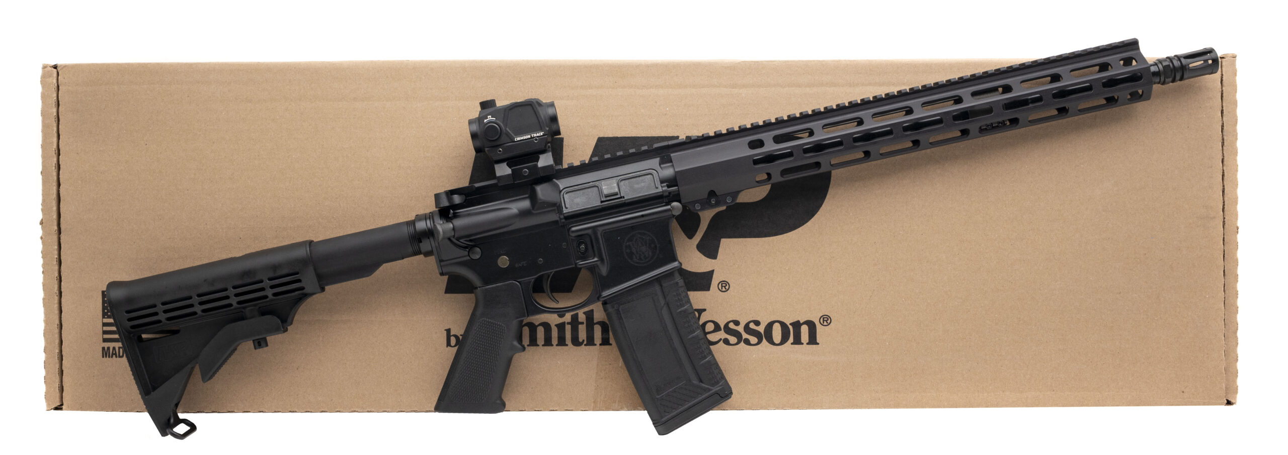Semi-Automatic Tactical Rifle with an 16" Barrel w/A2 Flash Hider. Anodized Finish, Mid Length Gas System, 15" Free Float M-LOK Handguard, Crimson Trace red dot, 6-Position Collapsible Stock, and an A2 Grip. Includes 1-30rd Magazine. NEW. UPC: 022188894110(DALLAS LOCATION)(STOCK PHOTO)