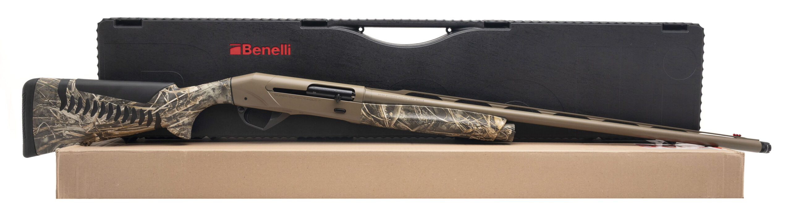 Semi-Automatic Field Shotgun with a 28" Vent Rib Advanced Impact Barrel w/Extended Removable Choke Chambered for 2 3/4" & 3" Shells. Fiber-Optic Front Sight, FDE Cerakote Finish, and Realtree MAX-7 Camouflage Finished Stock & Forend with a 14.5" LOP. NEW. UPC: 650350123616