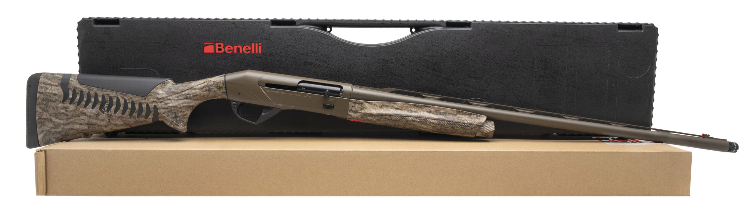 Semi-Auto Field Shotgun with a 28" Vent Rib Advanced Impact Barrel w/Extended Choke Chambered for 2 3/4" & 3" Shells. Fiber-Optic Front Sight, Patriot Brown Cerakote Finish, and Mossy Oak Bottomland Camouflaged Synthetic Stock & Forend with a 14.5" LOP. NEW. UPC: 650350123814(STOCK PHOTO)