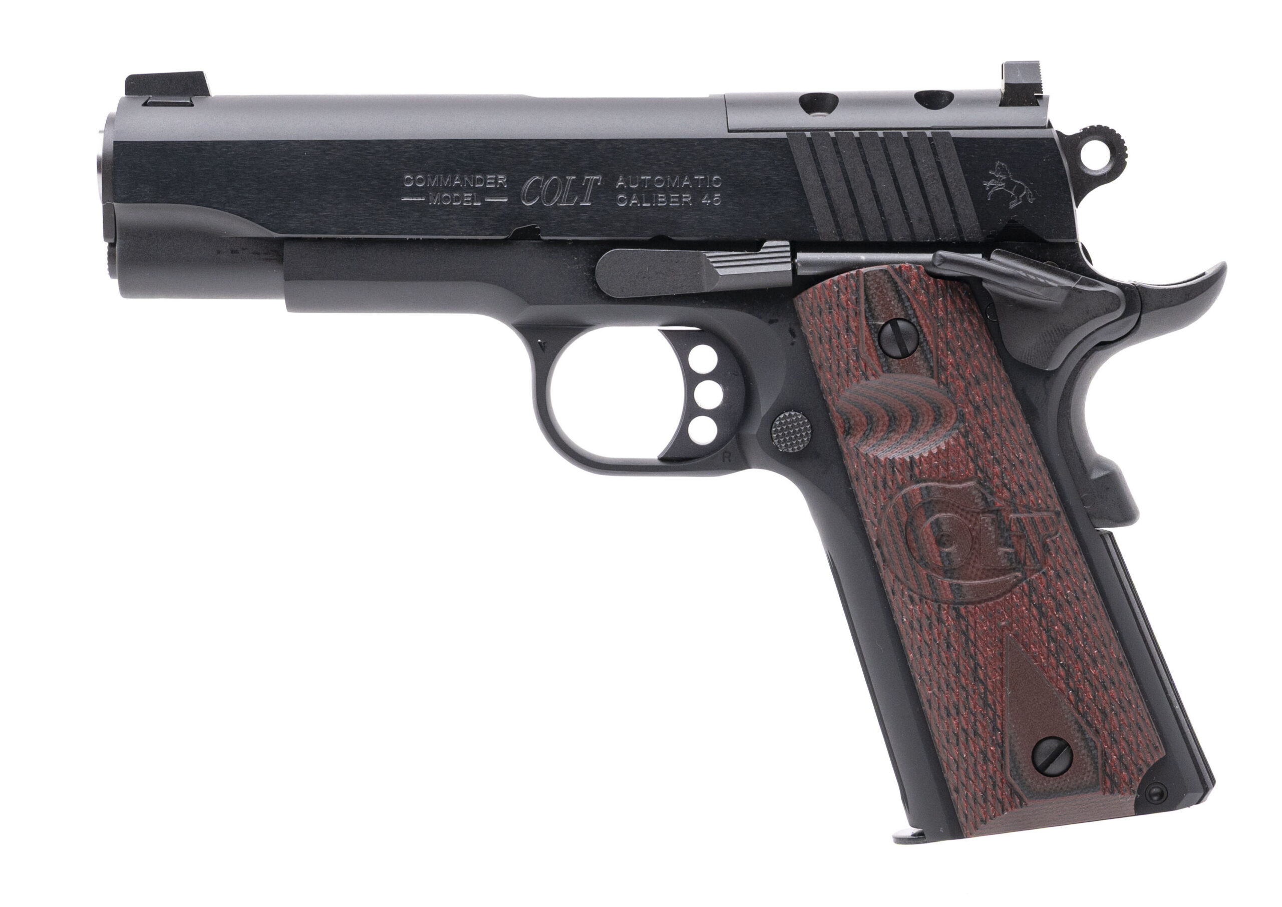 Lightweight Commander Model 1911 Pistol with a 4.25" Barrel. Optics Ready Slide, White Dot Front Sight, Manual Thumb-Safety, Black Anodize Finished Alloy Frame, and Checkered G10 Black Cherry Grips. Includes 1-8rd Magazine. NEW. UPC: 098289113696