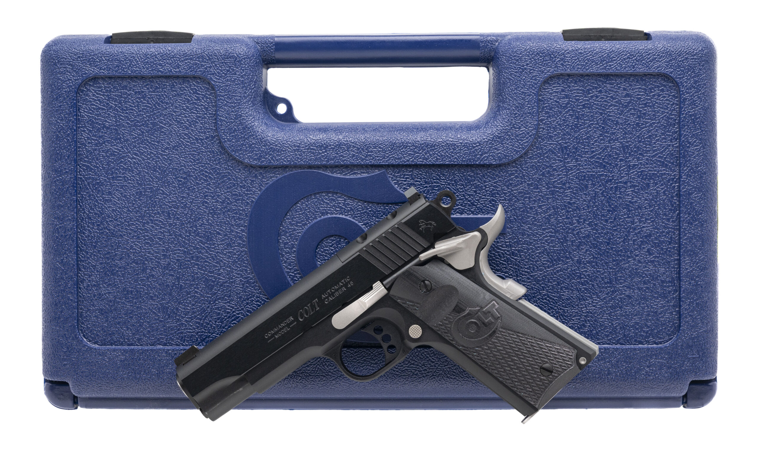 Lightweight Commander Model with a 4.25" Barrel. Optics Ready Blue Finished Slide, Tritium Front Sight, Manual Thumb-Safety, Black Cerakote Finished Alloy Frame, and G10 Grips. Includes 1-8rd Magazine. NEW. UPC: 098289113719(STOCK PHOTO)