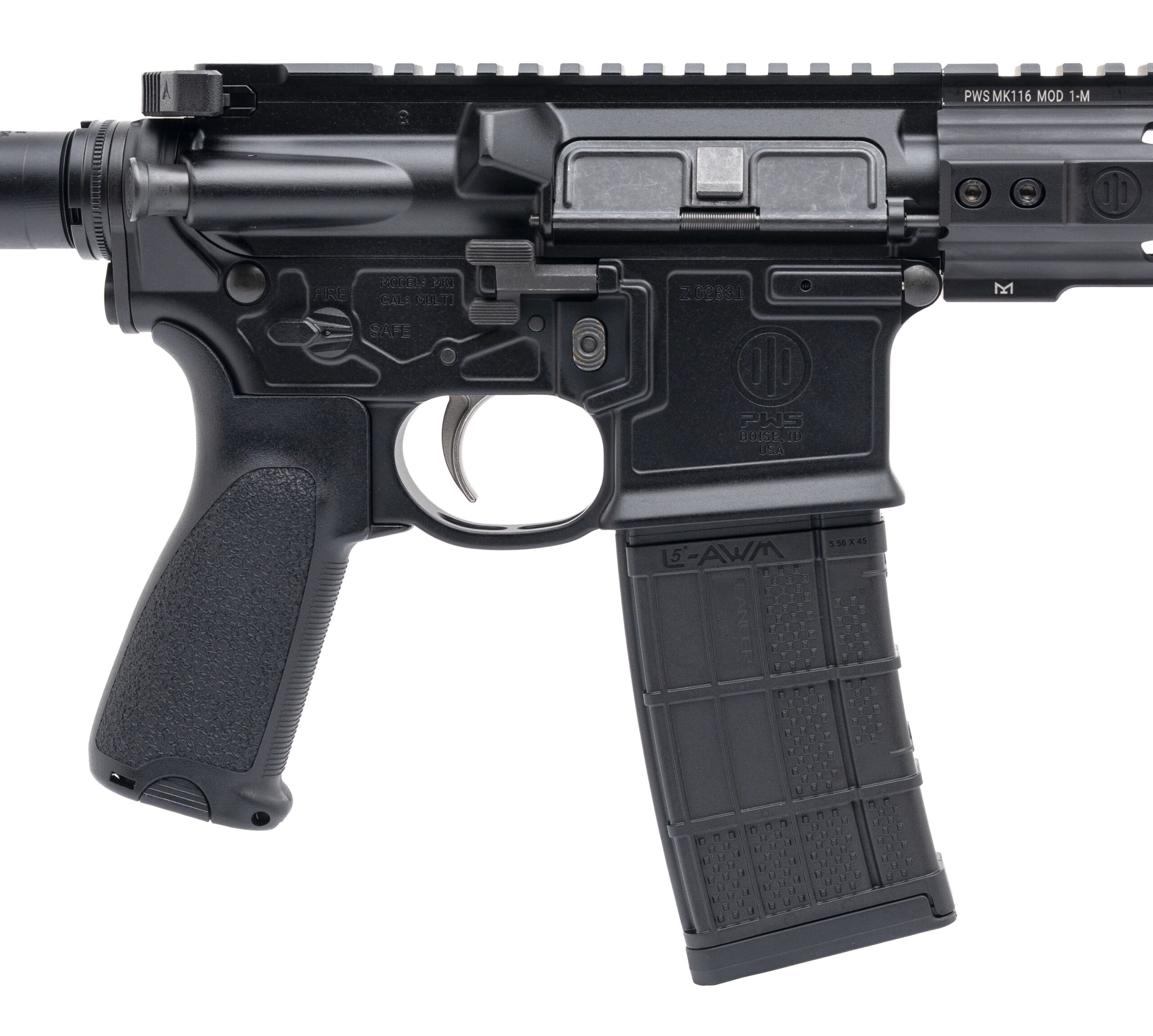PWS MK116 Mod 1-M .223 Wylde with an 16.1" Barrel and PWS FSC 556 Muzzle Device. Piston Operated, Mid-Length Gas System with an 15.05" PWS MLOK Handguard, Anodized Black Finish. Comes with BCM Pistol Grip and BCM Adjustable Stock Equipped. 30rd Capacity. NEW. UPC: 0811154033185(STOCK PHOTO)