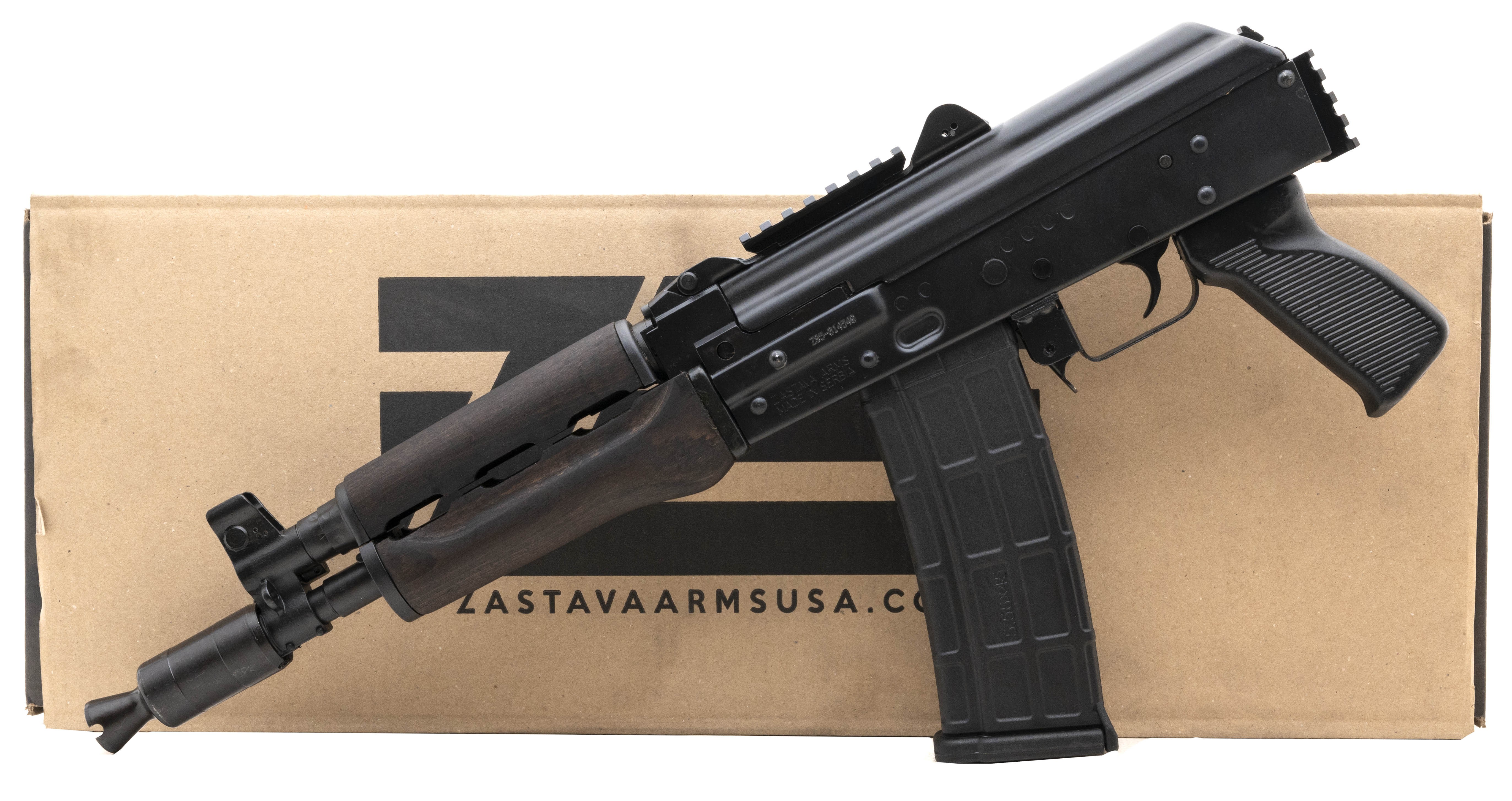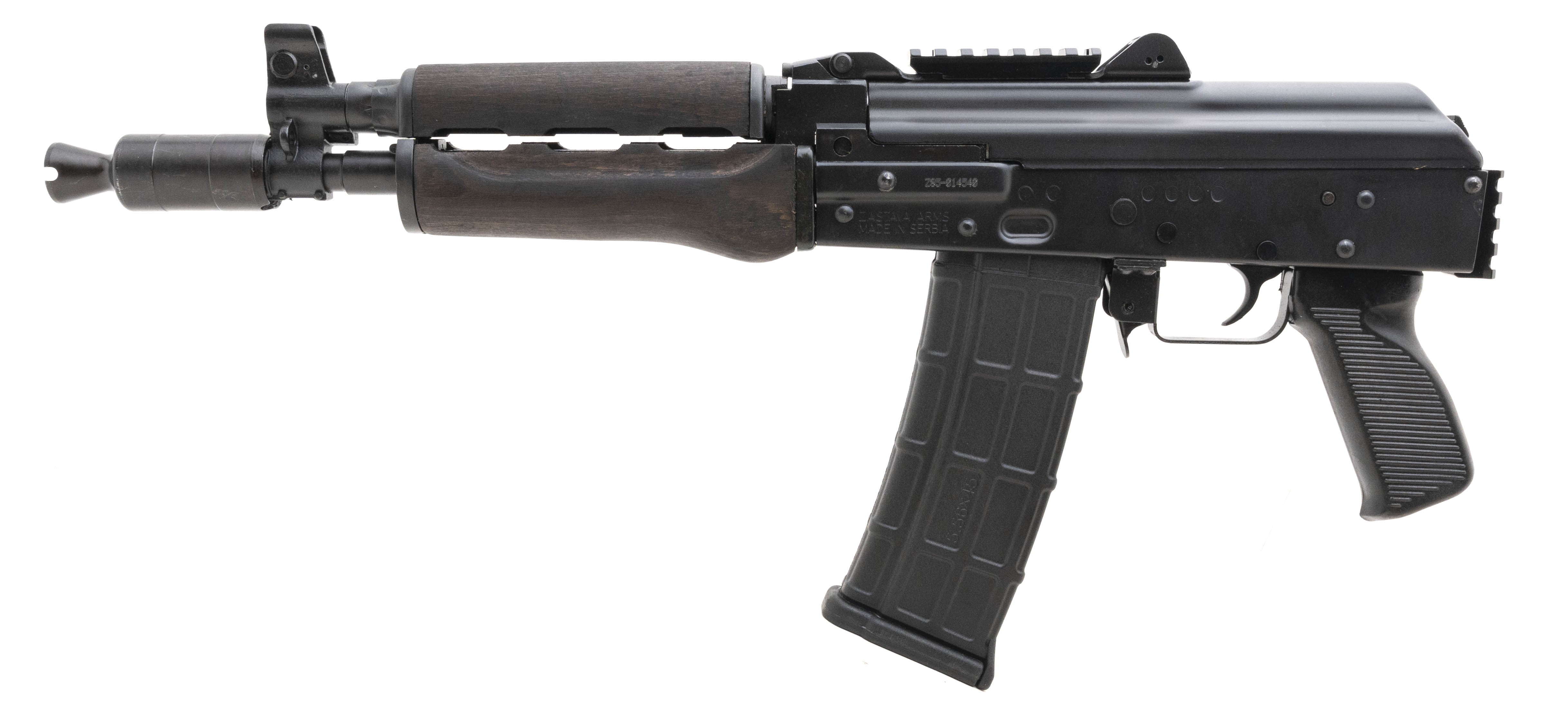 Serbian Made AK Pistol with a 10.5" Barrel. Matte Finish, Dark Wood Handguard, Picatinny Adapter & Optic Rails. Includes 1-30rd Magazines. NEW. UPC: 685757098113 (STOCK PHOTO)