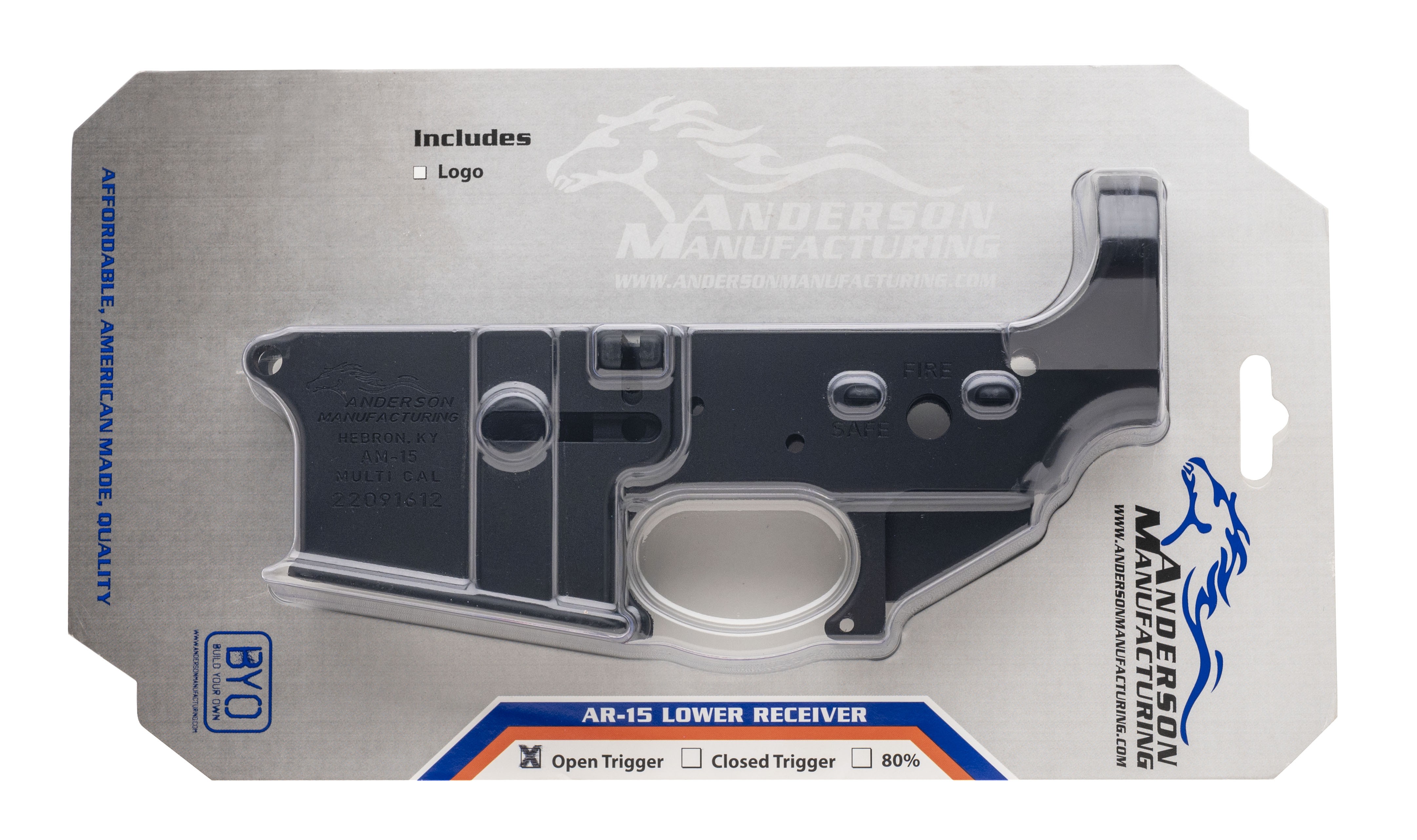 Anderson Manufacturing Am-15 multi Cal lower receiver with open trigger Guard. New. UPC:712038921676.(STOCK PHOTO)