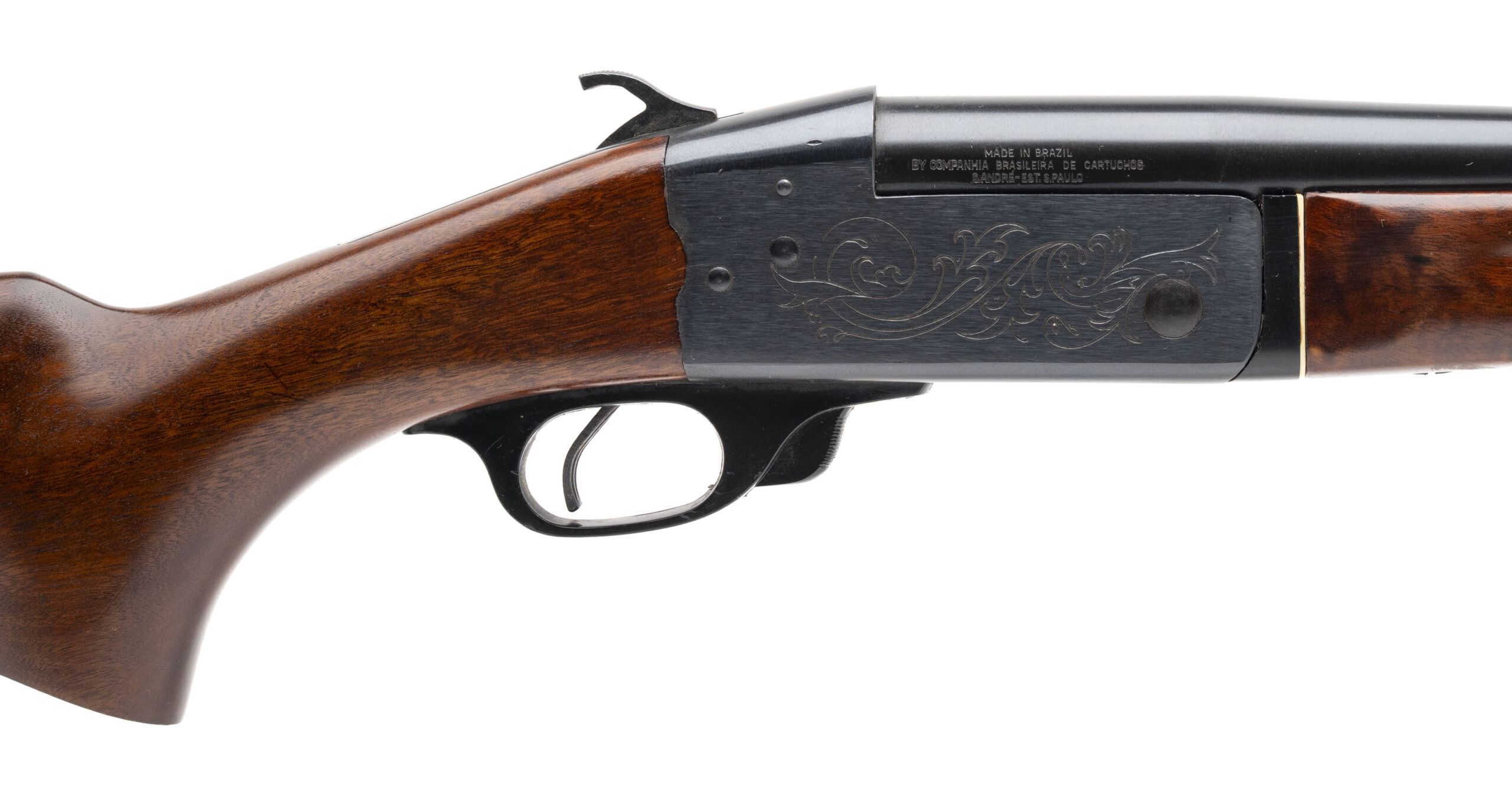 SN: 147929. 1980s vintage, 12 gauge with a 28" full bore barrel chambered for 2 3/4" shells. Bore is excellent. Brazilian made single-shot field shotgun with engraved blued finish, and wood stock & forend with a 14.25" LOP. Finish & stock show minor handling marks throughout. Overall condition is very good.
