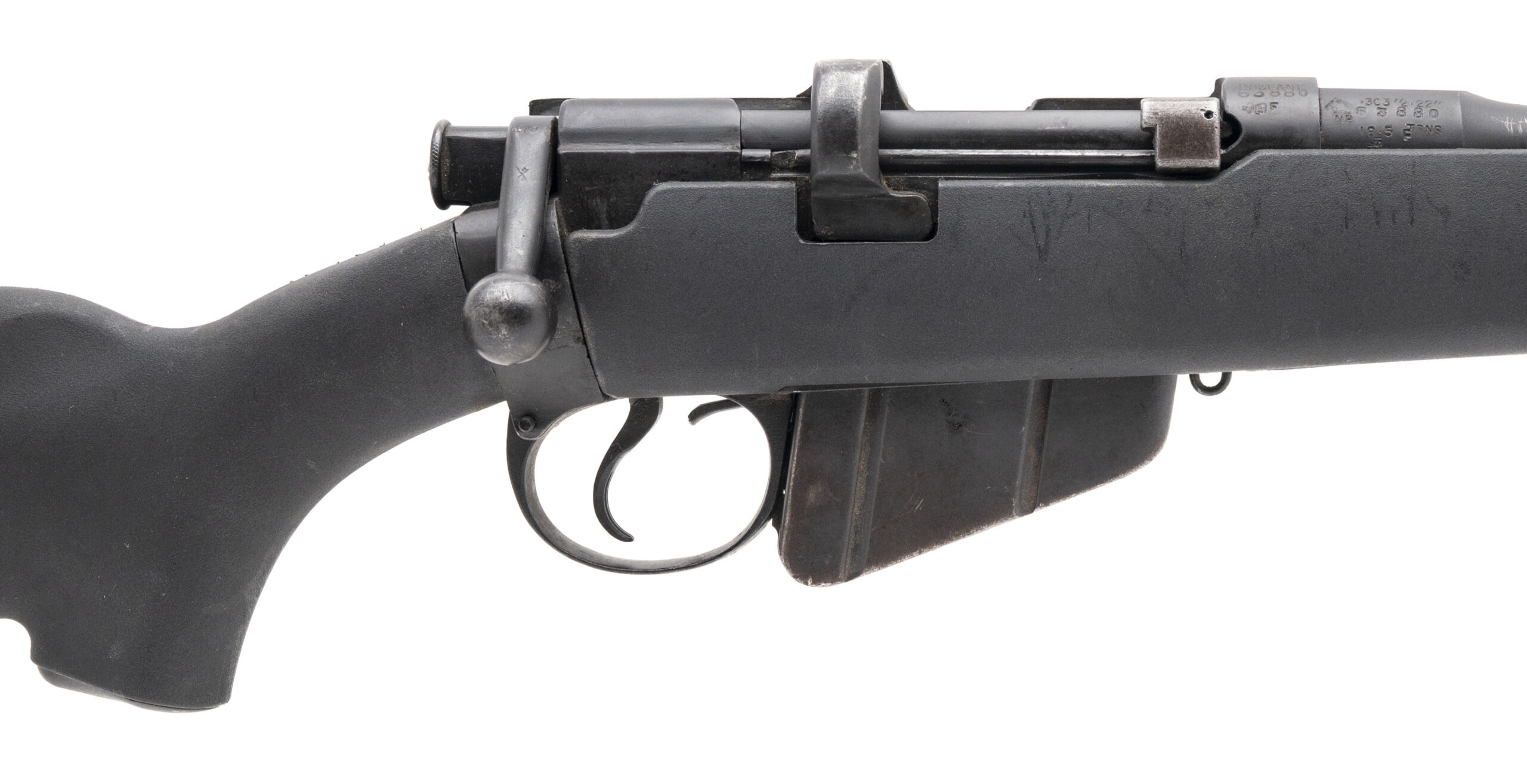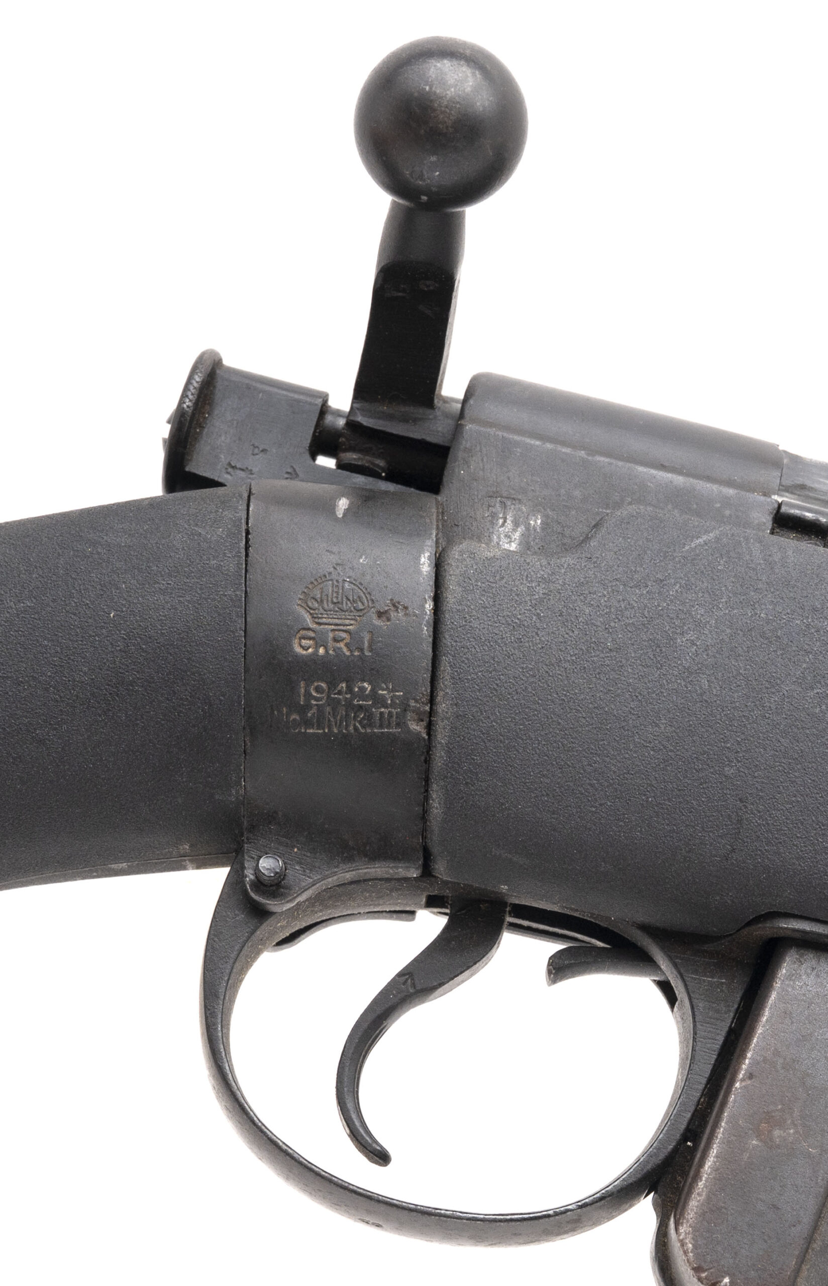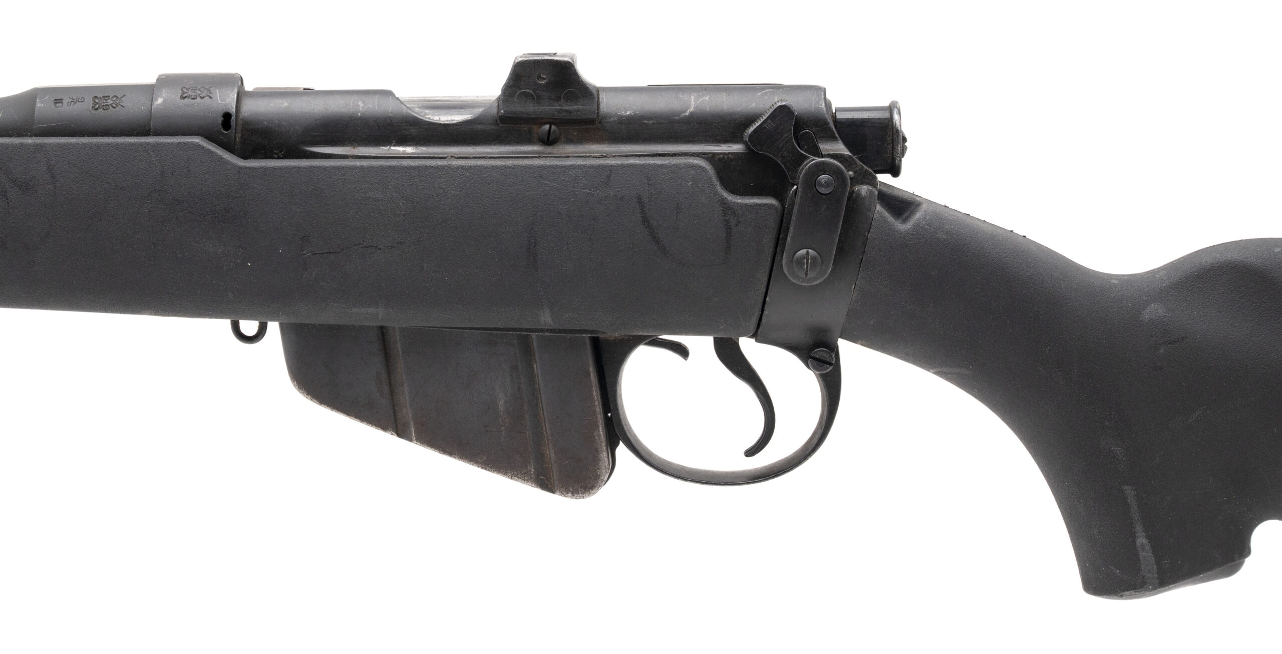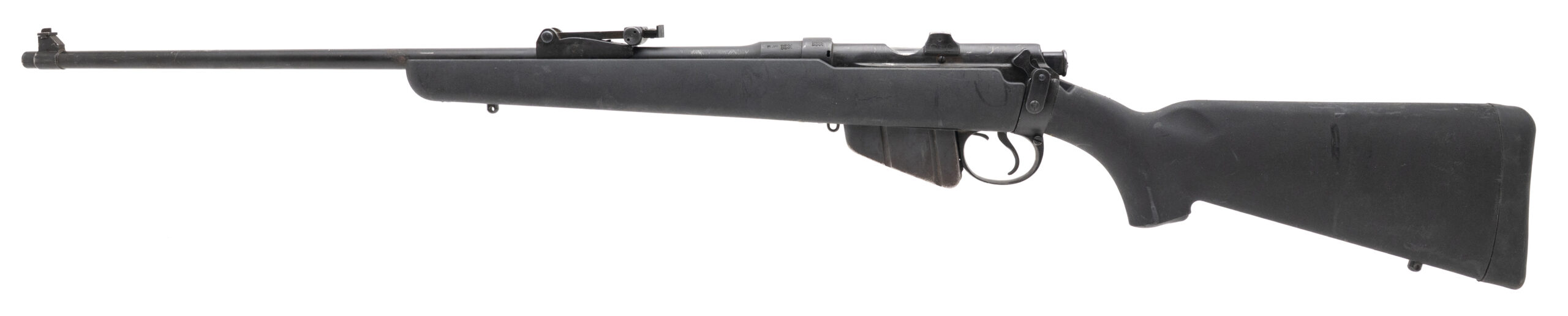 Serial No. 63880, made in 1942, .303 British, 25” round barrel. Bore is good with light frosting visible in the grooves, rifling remains strong. Serial numbers are non-matching. Rifle has been put into a black synthetic stock. Action is smooth and functions correctly.