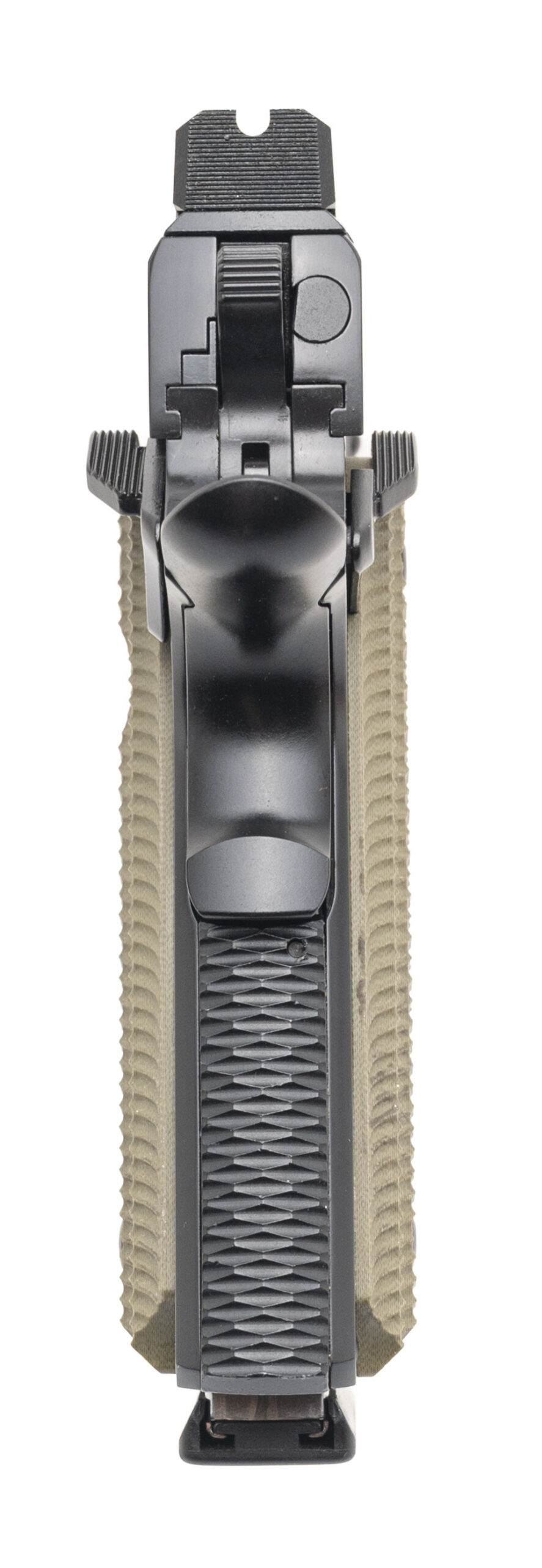 SN: NM968223. Modern production, 9mm with a 5" barrel. Bore is excellent. Single-action only steel frame 1911 style pistol with an optics ready slide, tritium front sight, ambidextrous manual thumb-safety, accessory rail, black anodized finish, and G10 grips. Finish shows light handling marks. Overall condition is very good. Includes 2 additional magazines, and original case.