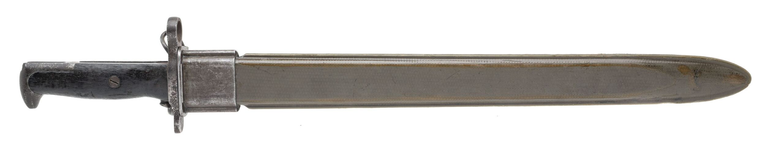 1910-dated Springfield Armory 16-inch M1905 bayonet for the Model 1903 & the M1 Garand rifles. Comes with a fiberglass-reinforced nylon plastic scabbard.