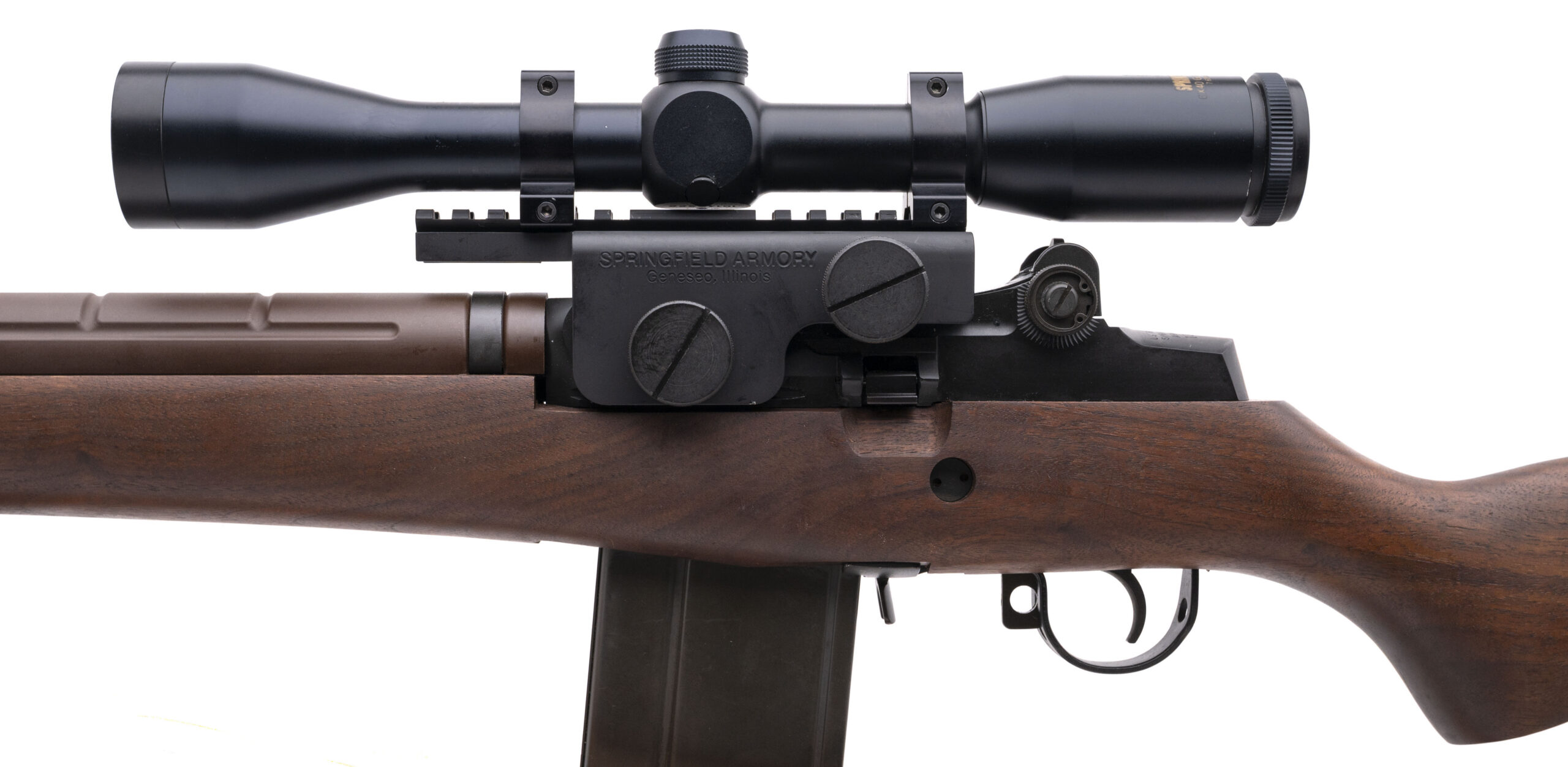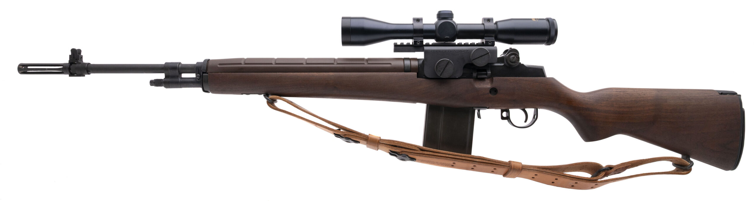 SN: 134467. Modern production, .308 WIN. with a 22" barrel w/flash hider. Bore is very good. Semi-auto rifle with a Springfield Armory 6X40 Government Model scope, parkerized finish, and wood stock w/hinged buttplate. Finish & wood stock show light handling marks throughout. Overall condition is very good. Includes leather sling.
