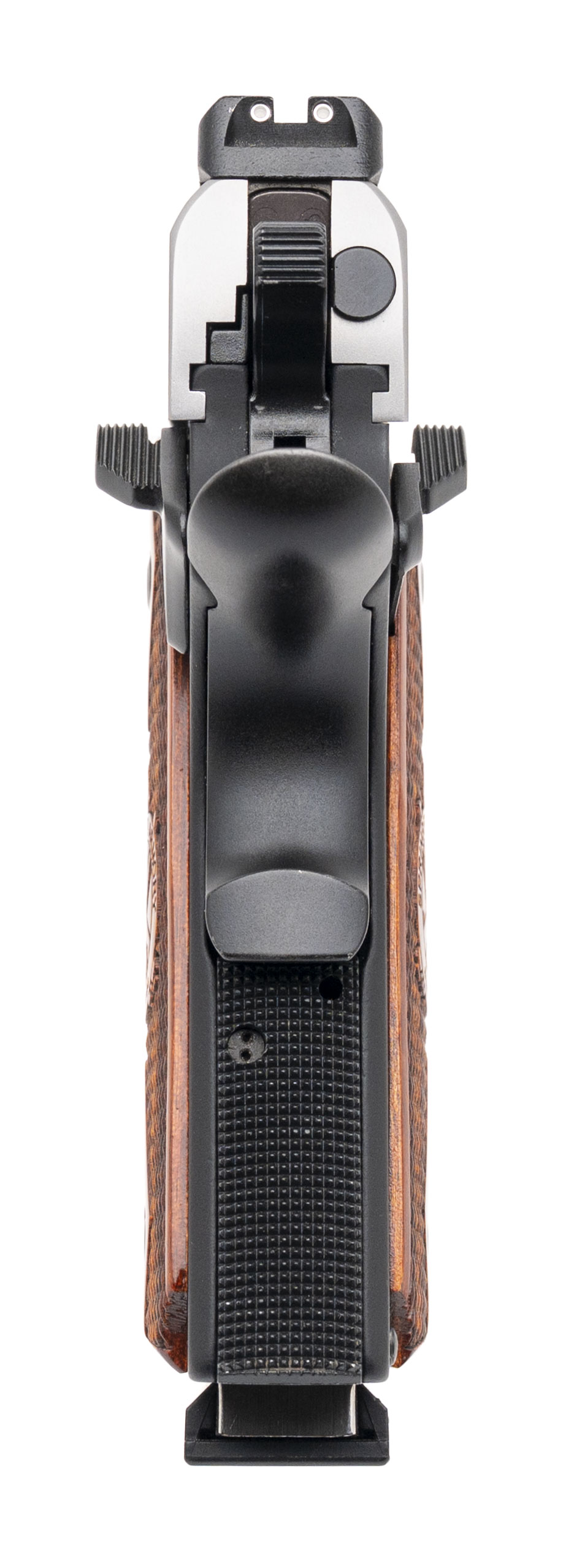 SN:6173 Modern production, 9mm with a barrel length of 3"barrel. Bore is in very good condition, semi-auto compact pistol with stainless slide, matte black frame, and checkered wood grips