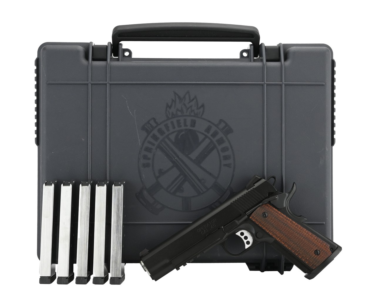 Springfield FBI Professional Operator 45 caliber pistol. FBI Professional model with night sights, lightrail, trigger action tuned and ambi safety from Springfield custom shop. Comes with box and 6 magazines in total.