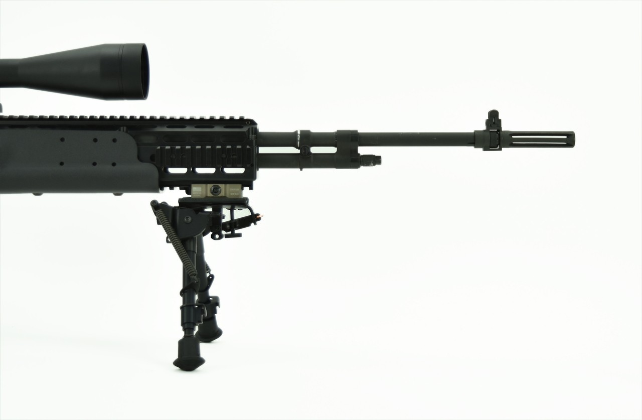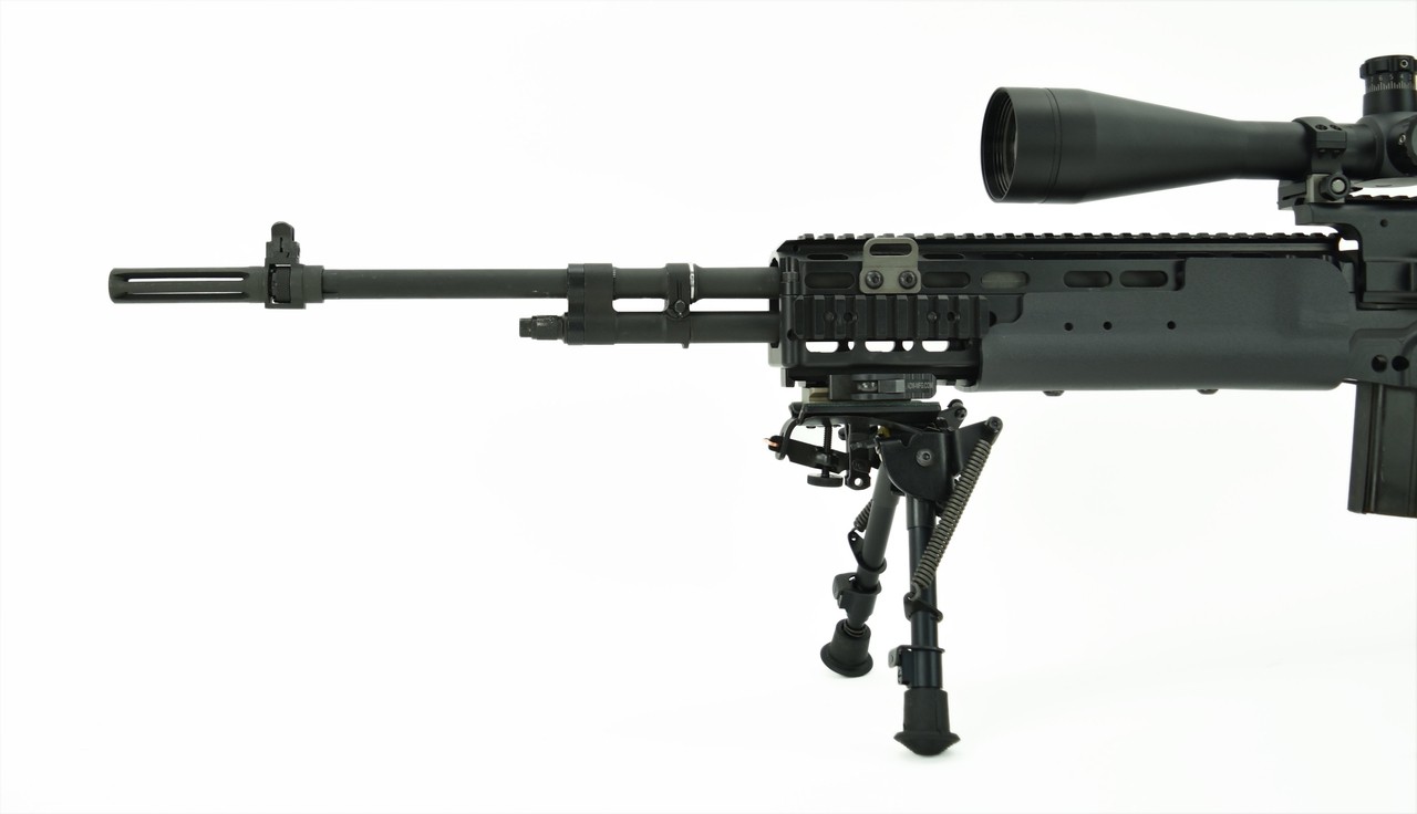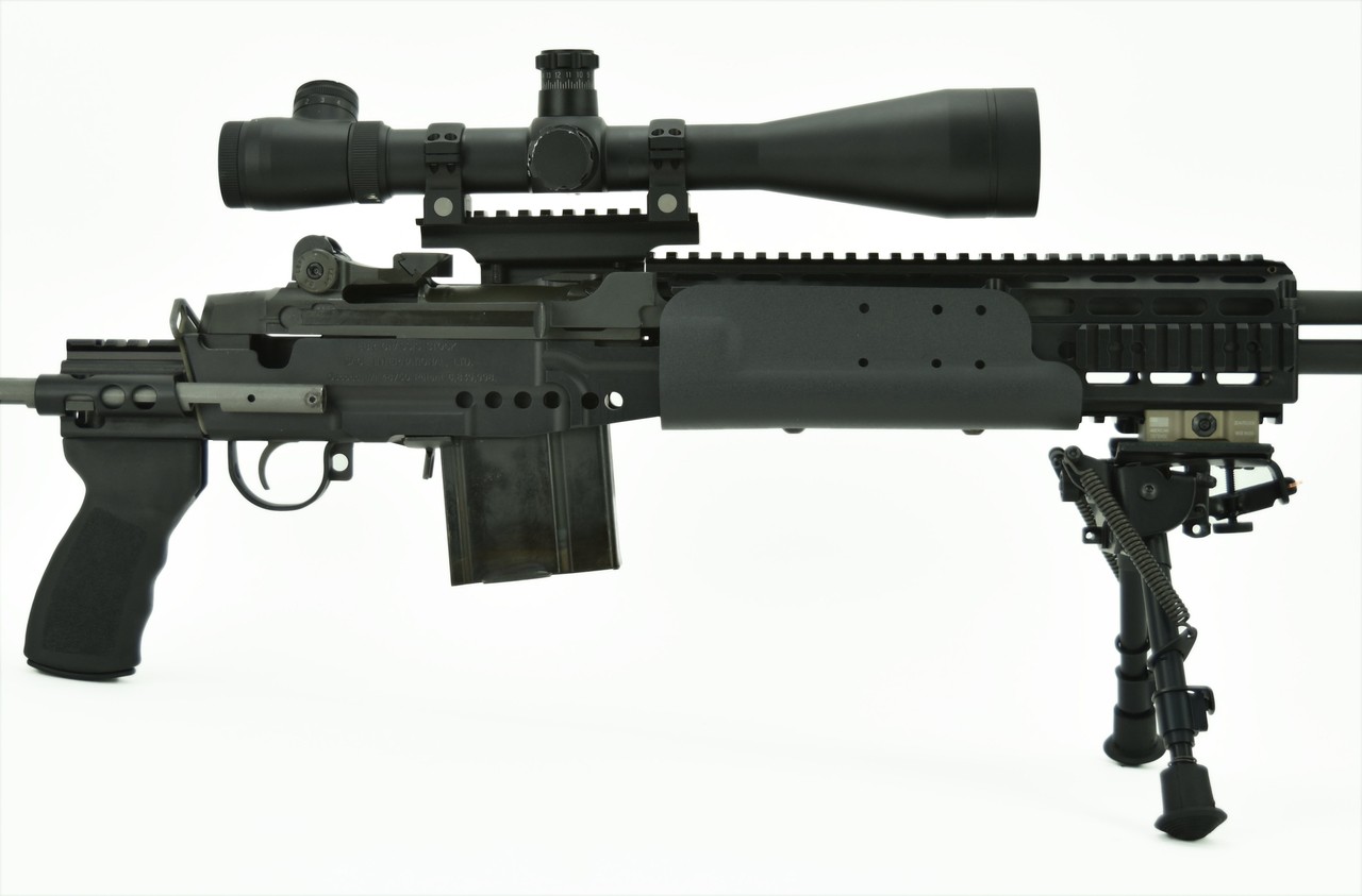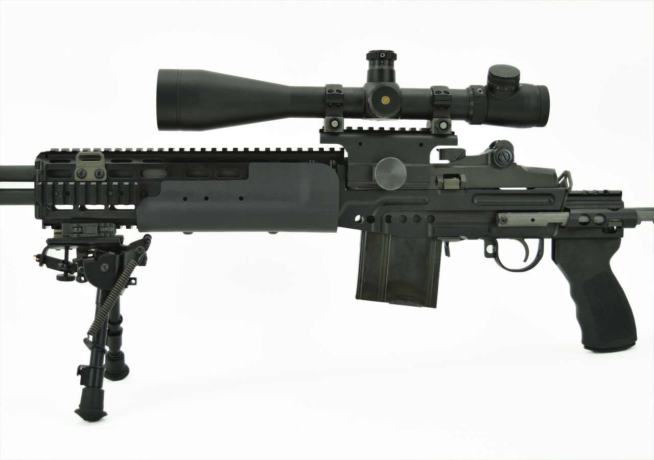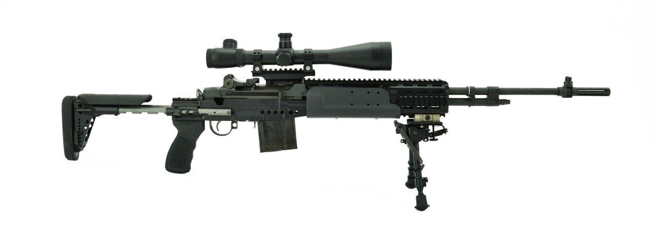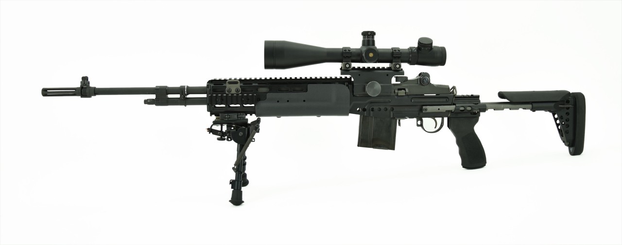 Springfield M1 A .308 caliber rifle. National Match MIA in Sage Industries chassis with a Leupold MK4 8.5-29x50. Mounted in Springfield Mount base. Includes Harris Bipod. Comes with one 20rd magazine.