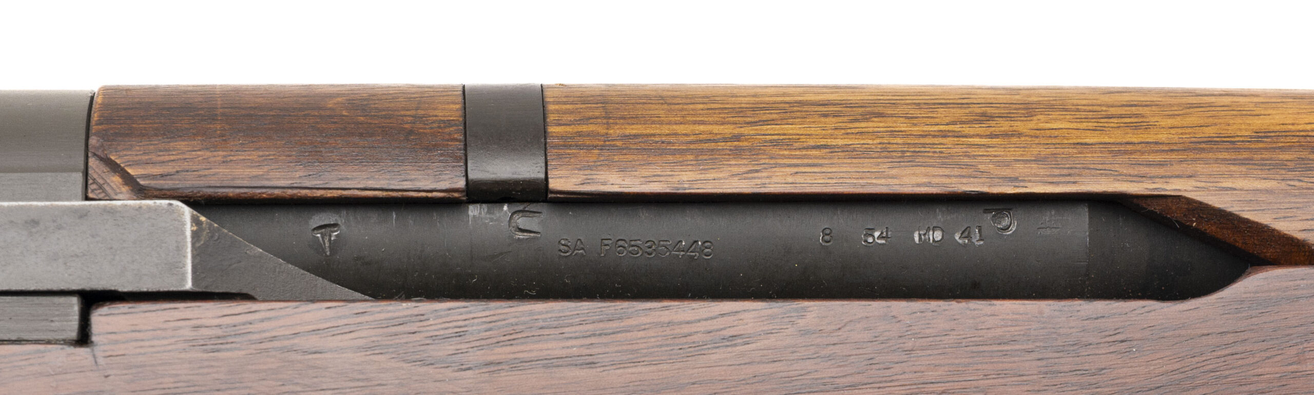 Serial number 5391675. Made in 1954 with an August 1954 dated SA barrel that has a bright bore & strong visible rifling. Features a radius cut Remington Arms "NM" op rod, a T105E1 adjustable rear sight assembly & a high hump gas cylinder lock screw. The stock is U.S. Defense Department Acceptance Stamp marked with a circle serif P proof mark & there is glass bedding at the magazine. Comes with USGI M1943 webbed sling. Condition overall is excellent & the action is mechanically functional.