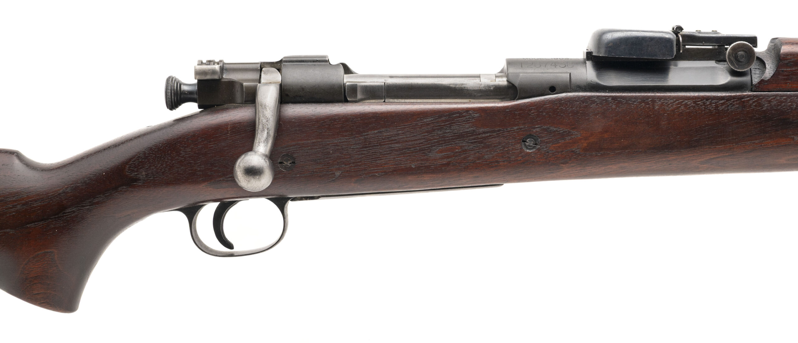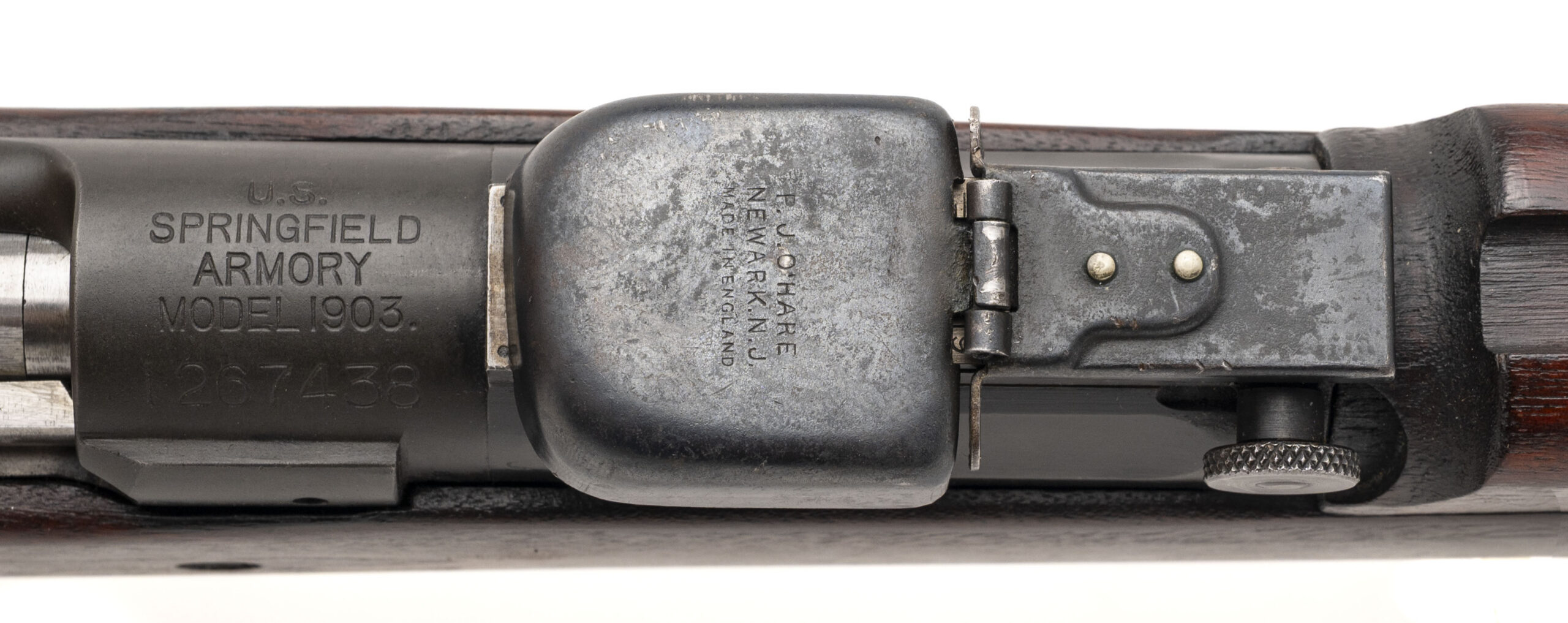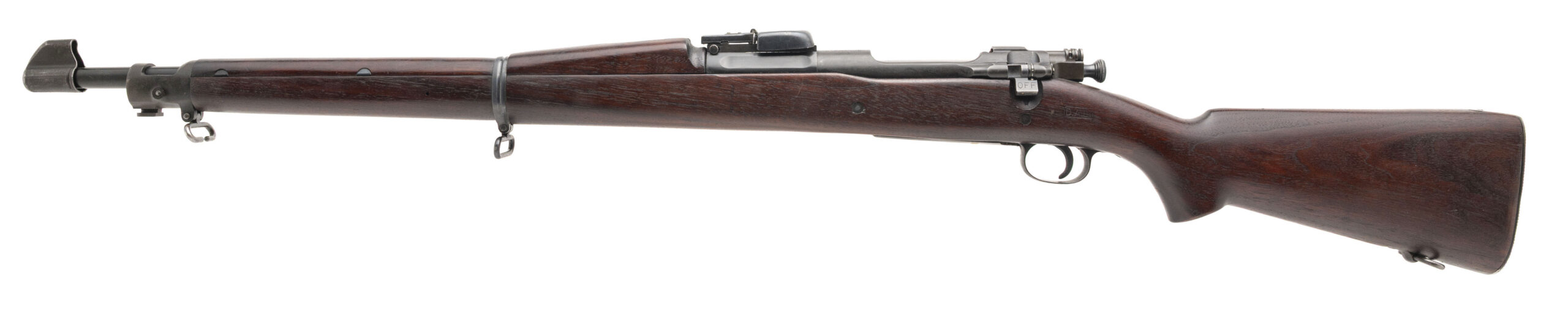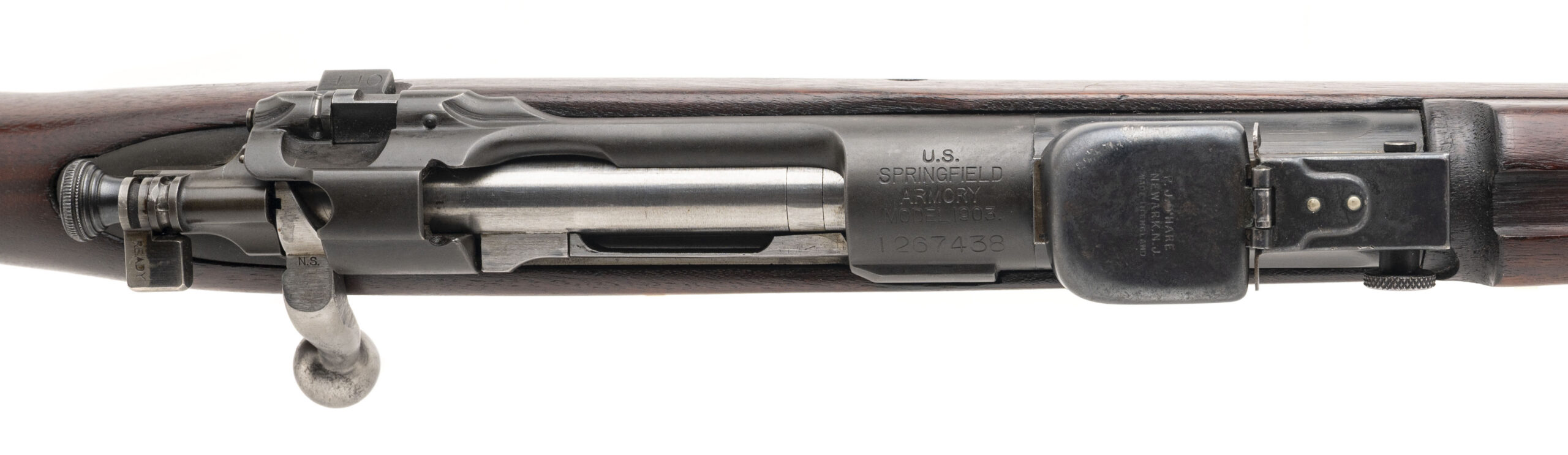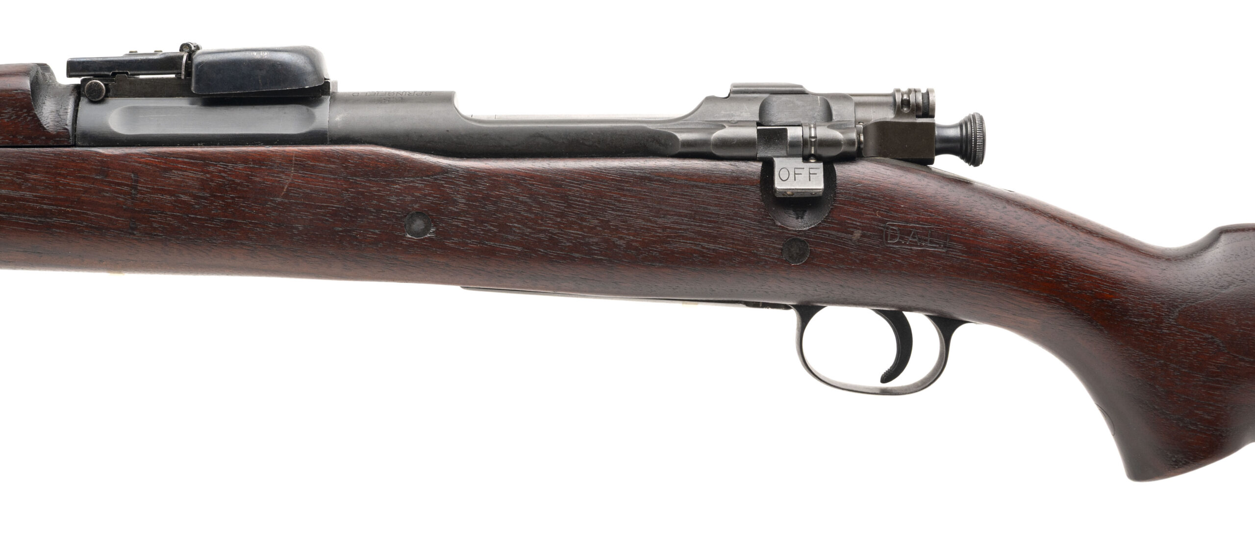 Serial number 1267438. Made at Springfield Armory in 1925 with an October 1924 dated 24-inch star gauged SA barrel that has a bright bore with strong visible rifling. Rifle has a smooth polished bolt that is not blued or Parkerized, the safety flag is reversed & the bolt is equipped with a knurled cocking piece. Condition overall is excellent with flawless original factory finish across the metallic parts. Rifle is equipped with an excellent condition USGI C-stock that is marked "D.A.L." for Daniel A. Leary, an inspector at Springfield at the time the rifle was made. There is also a circle non serif P cartouche on the pistol grip. The buttstock & handguard are matching in both color & condition. Comes with front & rear sight covers.