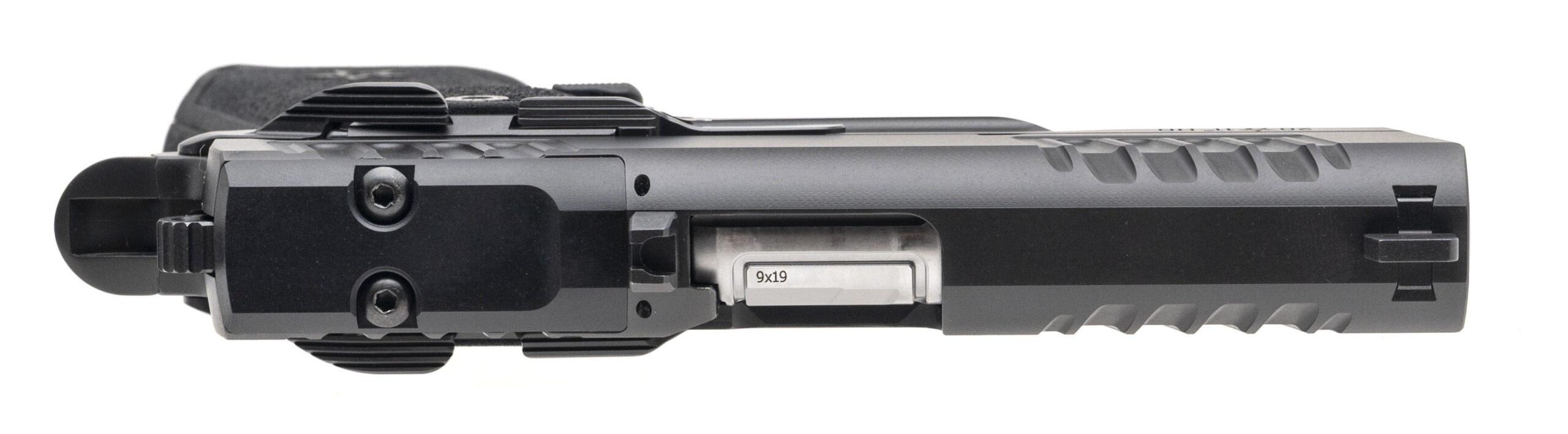 SN: P4-02222. Modern production, 9mm with a 4" stainless steel bull barrel. Bore is bright with strong rifling. Compact 2011 pistol with an optic cut and combat cut co-witness capable sights. Excellent condition overall. Comes with Staccato carry bag and 4 extra magazines.