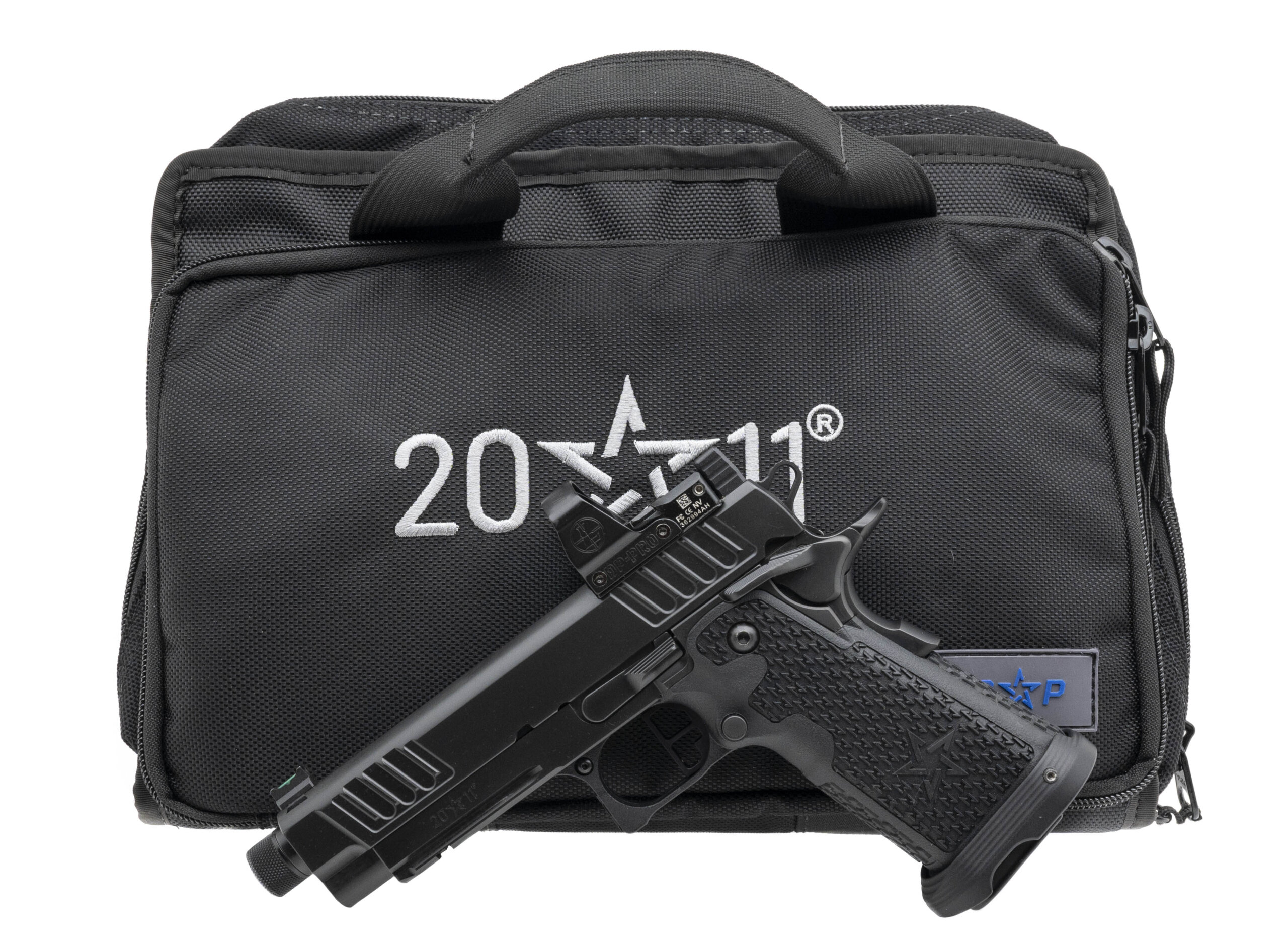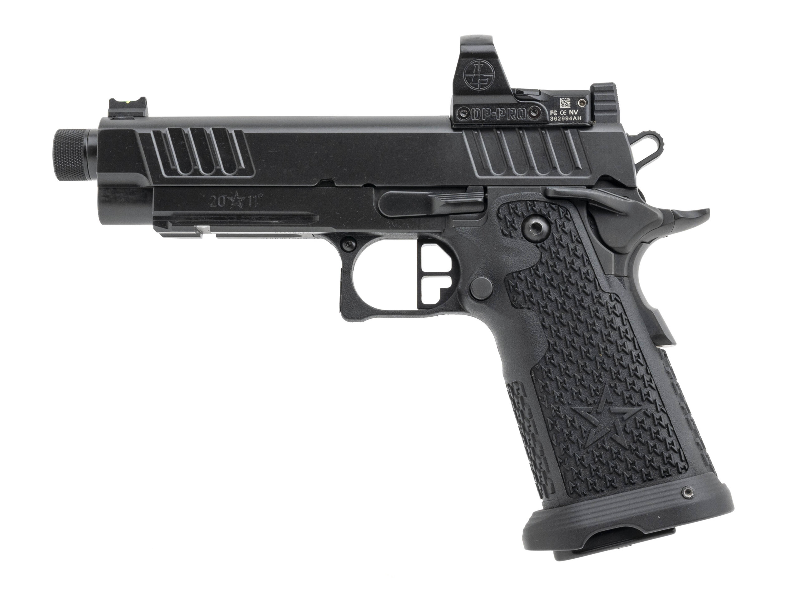 SN: P21-12859. Modern production, 9mm with a 5" .5/20 threaded barrel. Bore is in excellent condition. Staccato compact steel frame pistol with optic ready slide. Finish is in excellent condition. Grips are in excellent condition. Overall condition is excellent. Comes with range bag, Delta Point Pro red dot sight, and two extra magazine.