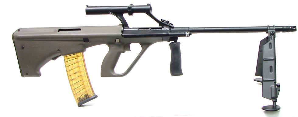 Steyr Aug .223 Rem caliber rifle. Original pre-ban model with 20 barrel and 26 machine gun barrel. OD green stock. Excellent condition.