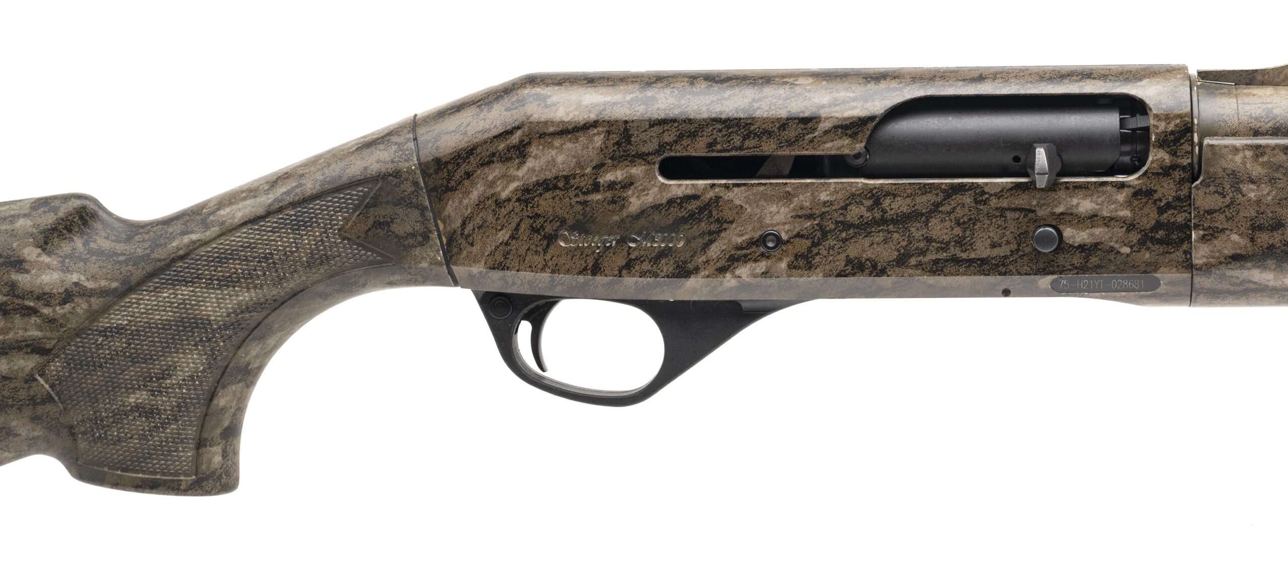 SN: 75-H21YT-028681. Modern production, 12 gauge with 28" vent rib barrel w/removable choke chambered for 2 3/4" & 3" shells. Bore is excellent. Semi-auto field shotgun with a fiber-optic front sight, and Mossy Oak Bottomland camouflage finish & synthetic stock. Camouflage finish shows minor loss & field wear. Overall condition is very good.