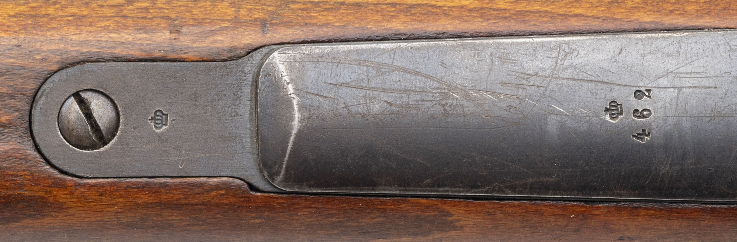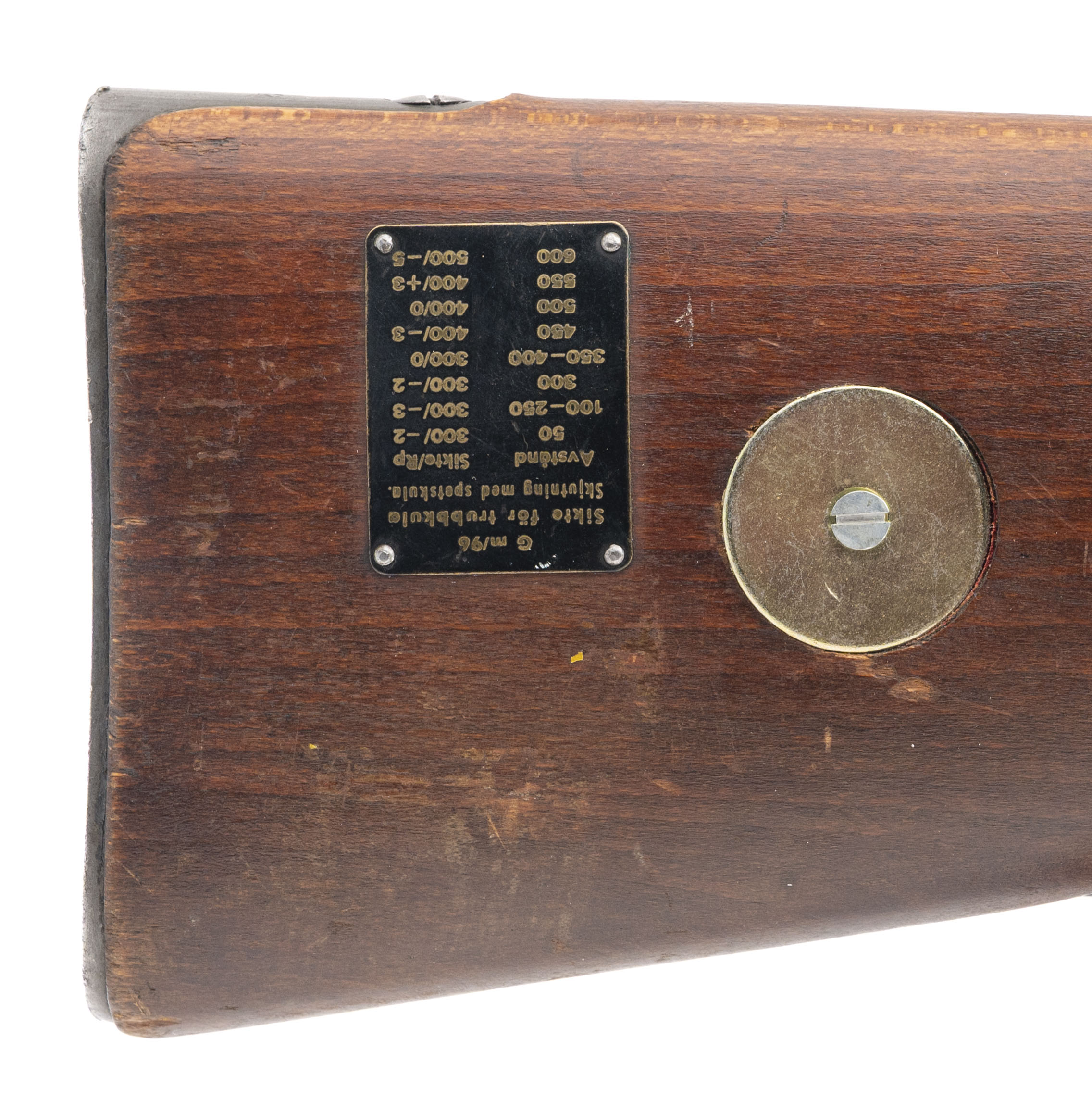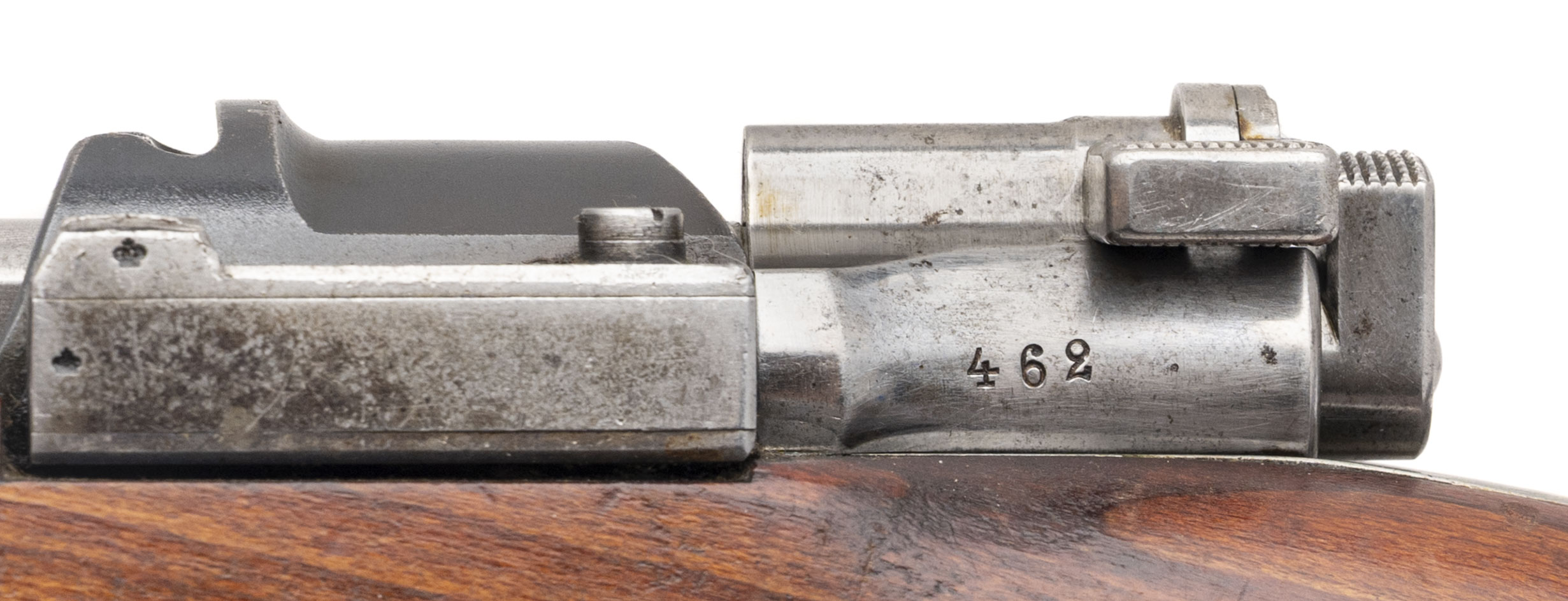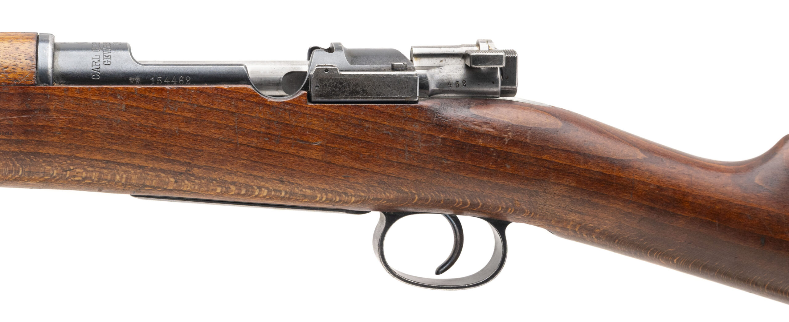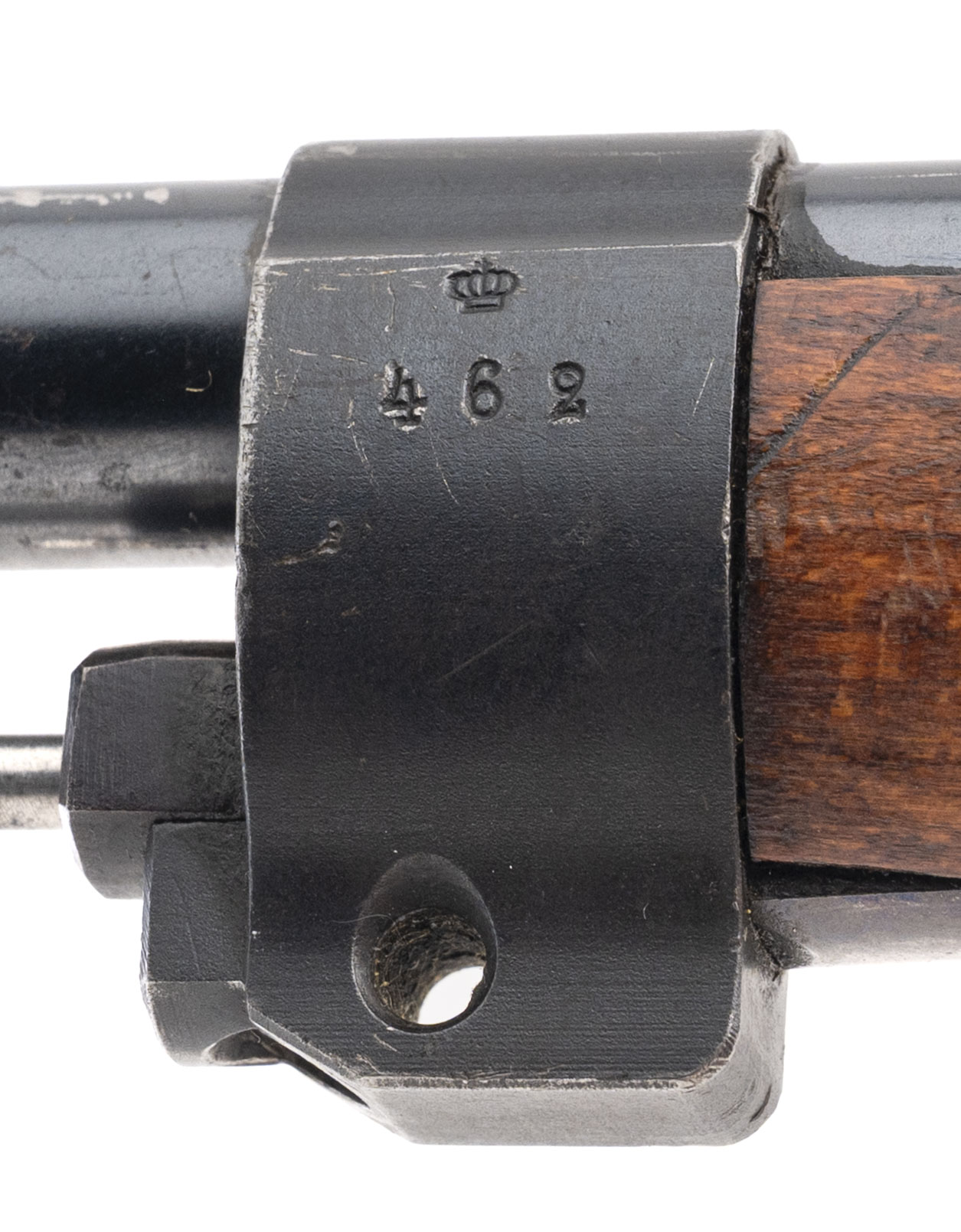 SN: 154462. Made in 1905. Bolt action rifle chambered in 6.5x55mm Swede with a 29" barrel. Overall condition is great with some minor handling wear, bore condition is excellent with sharp rifling. Has All matching number except the cleaning rod. Threaded muzzle, the brass disk seems to have been replaced with a blank one but just behind the brass disk is range chart. Has Sling.