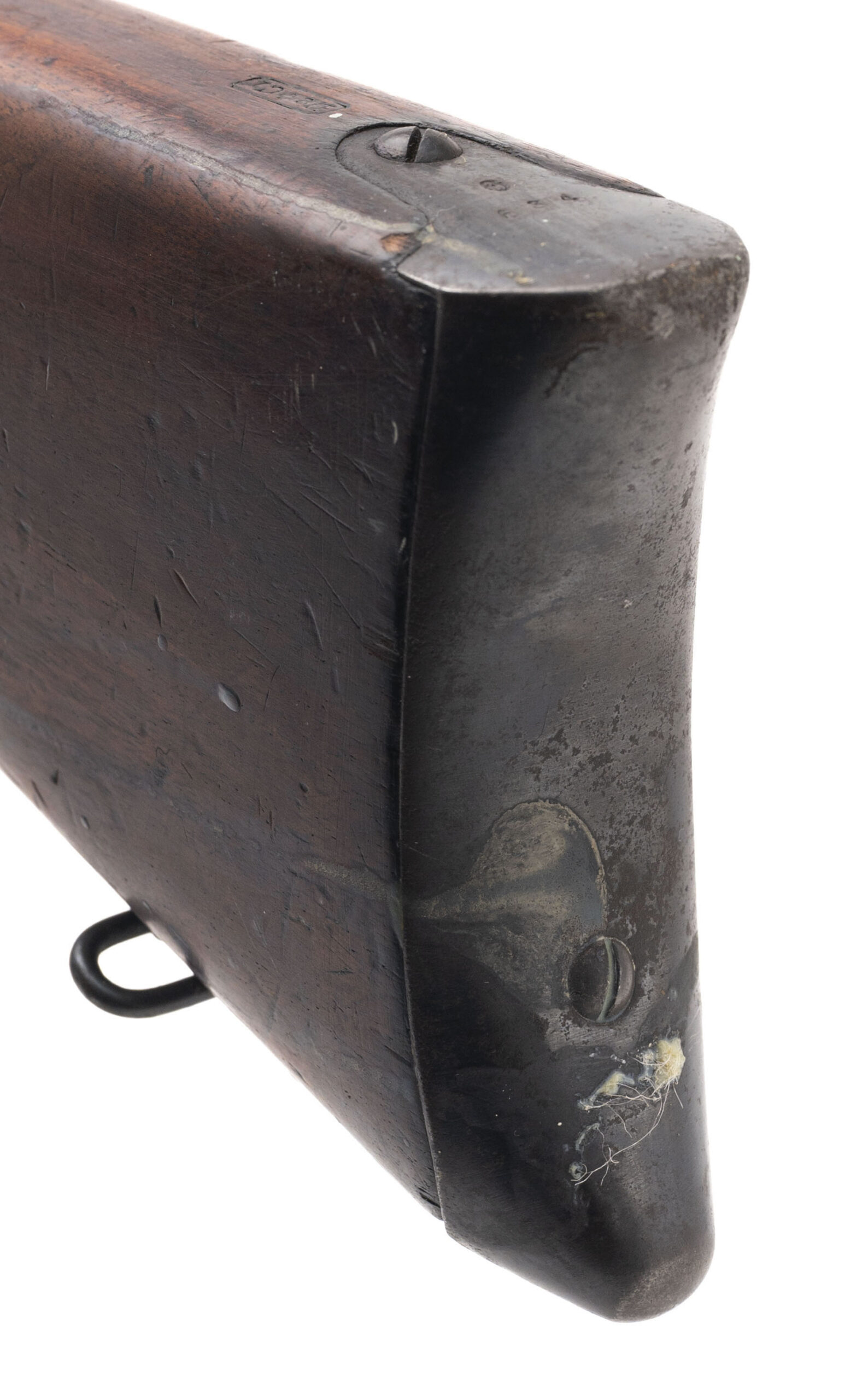 Serial No. 172634, manufactured circa 1878–1881, chambered in 10.4×38 (.41 Swiss) with a 31.1” round barrel. Bore is good, showing frosting and light oxidation in the grooves while the rifling remains strong and well defined. Metal finish shows scattered areas of surface oxidation consistent with age and long service, with factory markings on the receiver remaining sharp and legible. The stock is in good condition with light handling impressions noted throughout. A solid and representative example of Switzerland’s iconic Vetterli service rifle. Action is smooth and functions correctly.