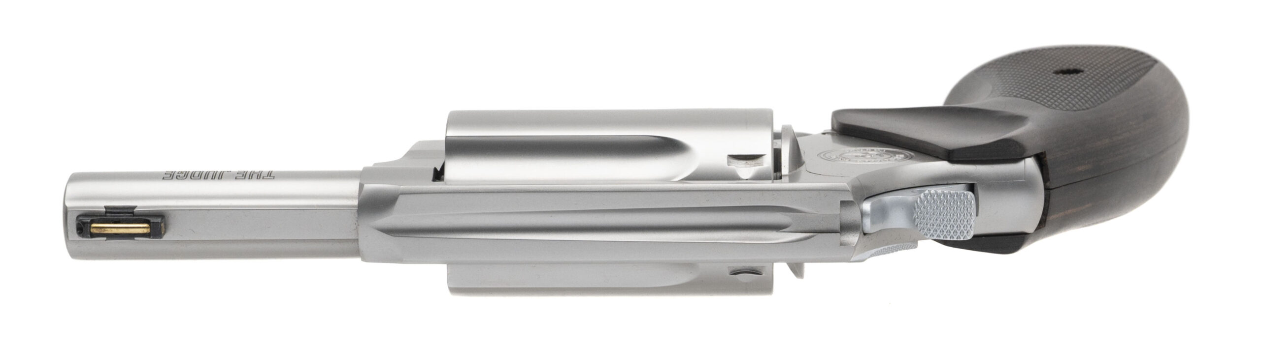 SN: AEK777465. Modern production, .45LC/410 Gauge with a 3" barrel. Bore is excellent. Stainless steel double action revolver with checkered wood grips. Like new condition with a Vault case.