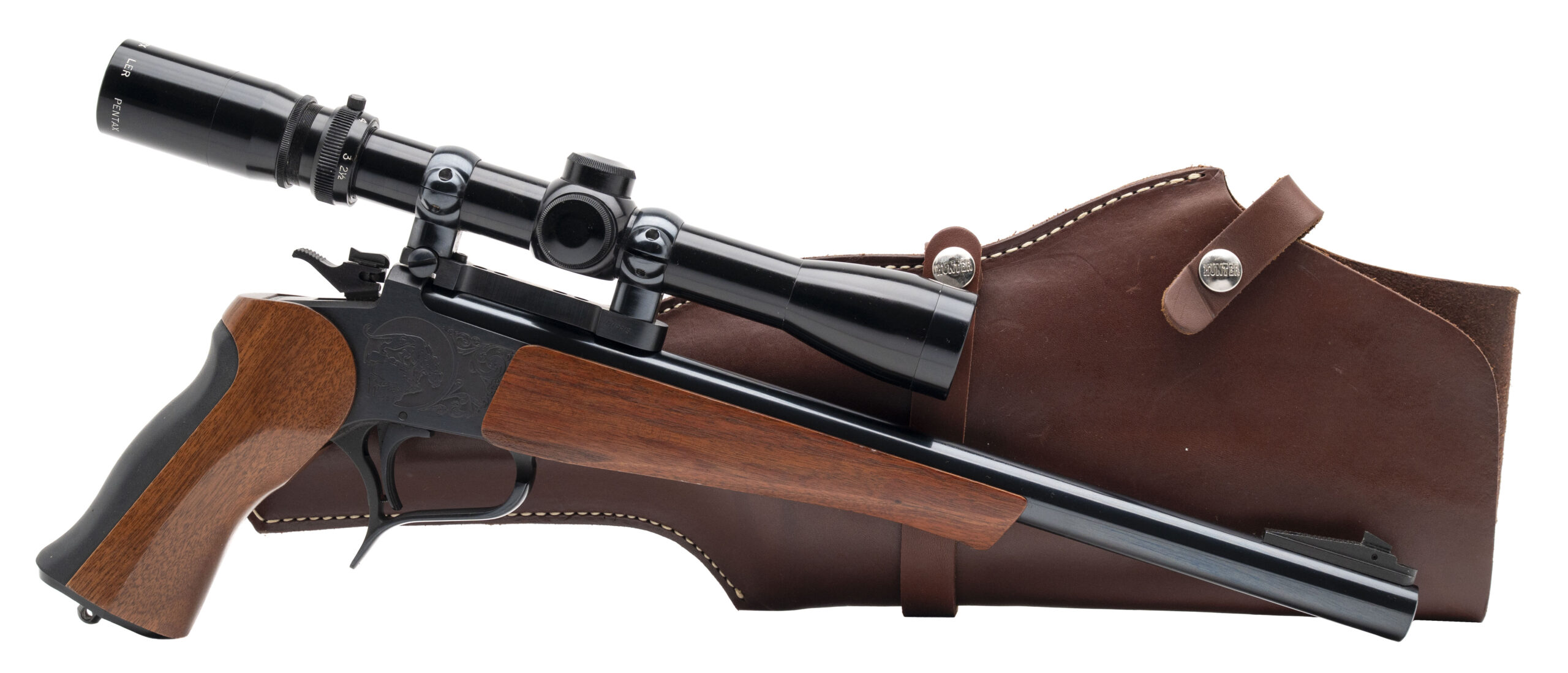 SN: 426082 made circa 1990’s. Single shot pistol chambered in 7-30 Waters with a 14” barrel, walnut forearm and walnut grip with rubber back and Pentax 2.5-7X scope in very good condition with an excellent bore. Comes with Holster and hard case.