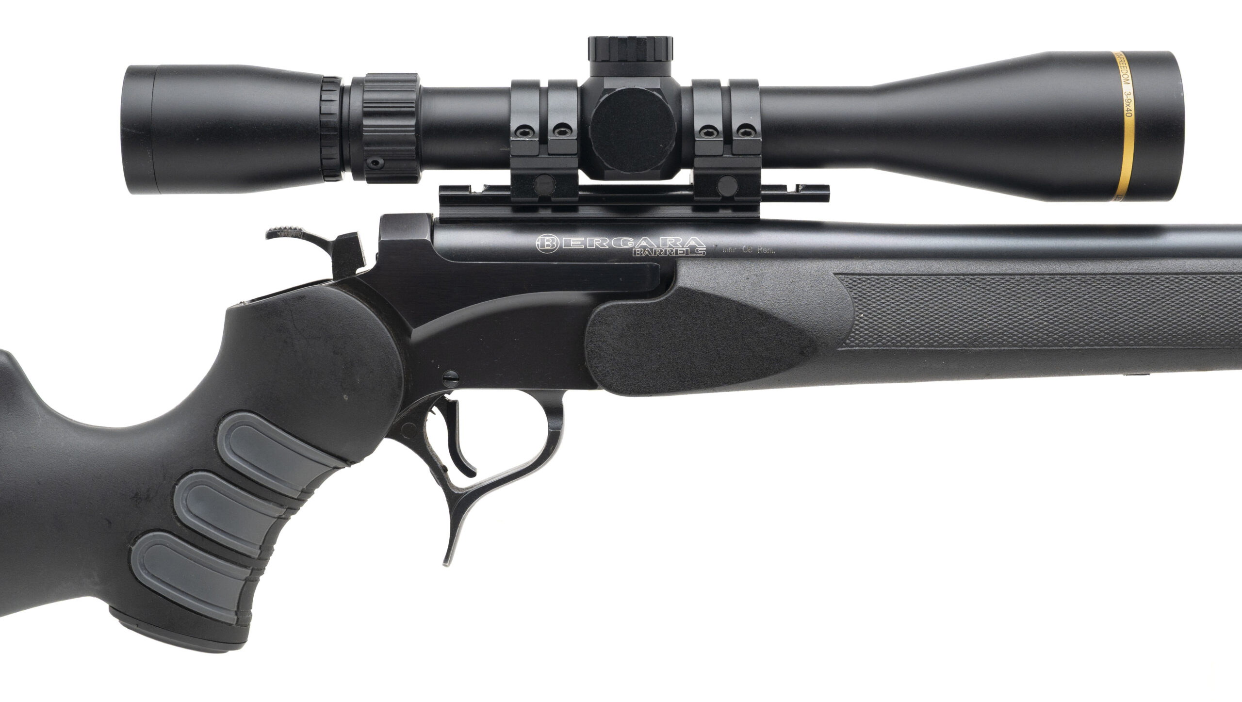SN: 7719 modern production single shot rifle chambered in 7mm-08 with a 24" round Bergara barrel, Leupold VX-Freedom 3-9 scope and synthetic stock and forearm. Moderate wear and handling marks, overall in good condition with an excellent bore.