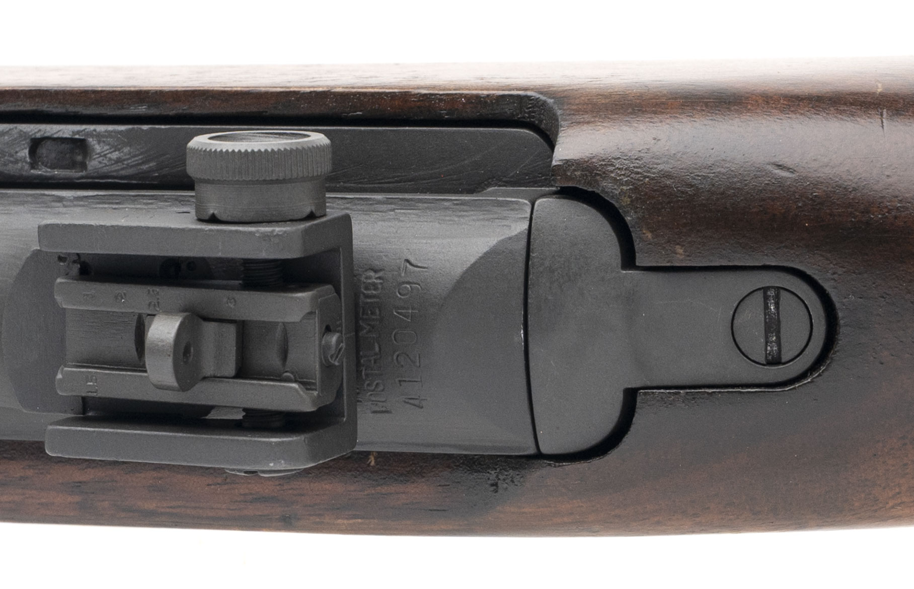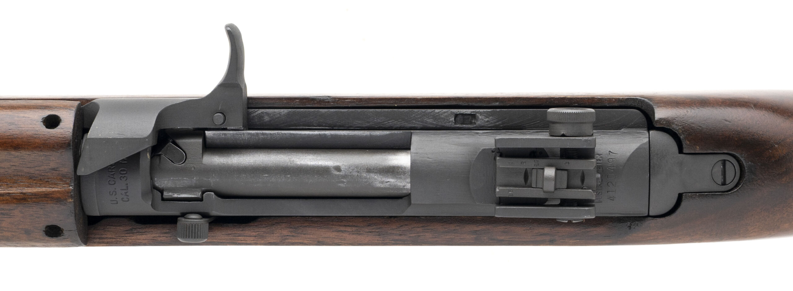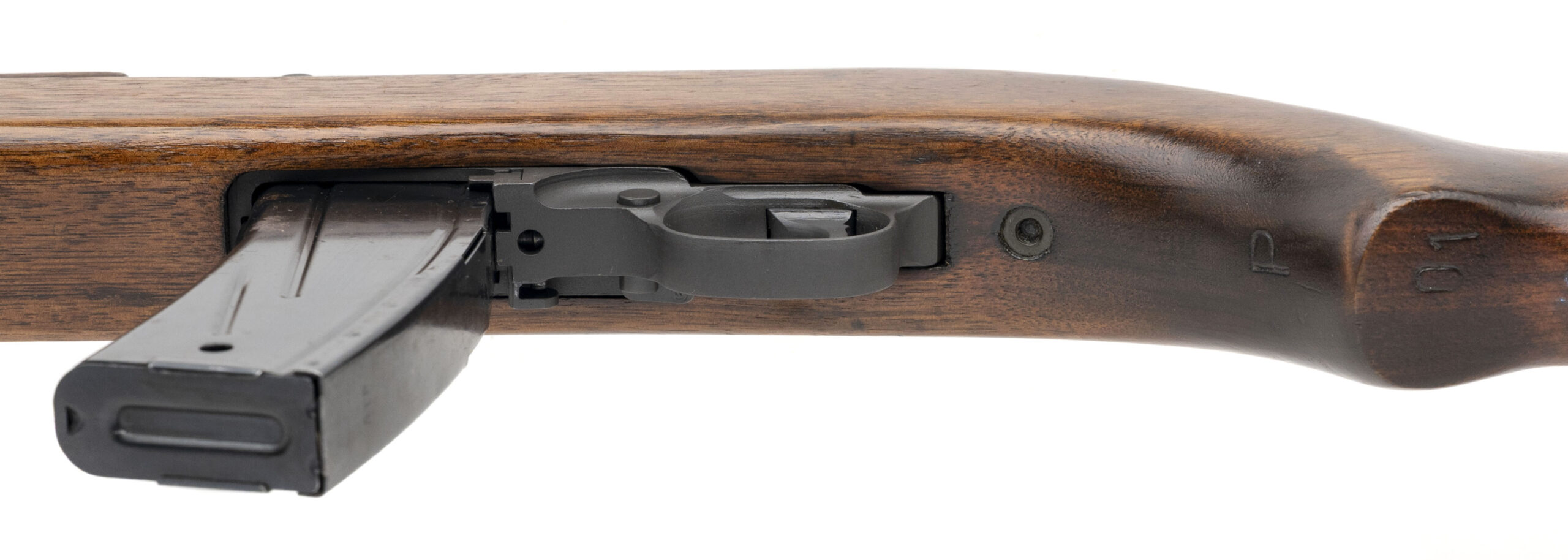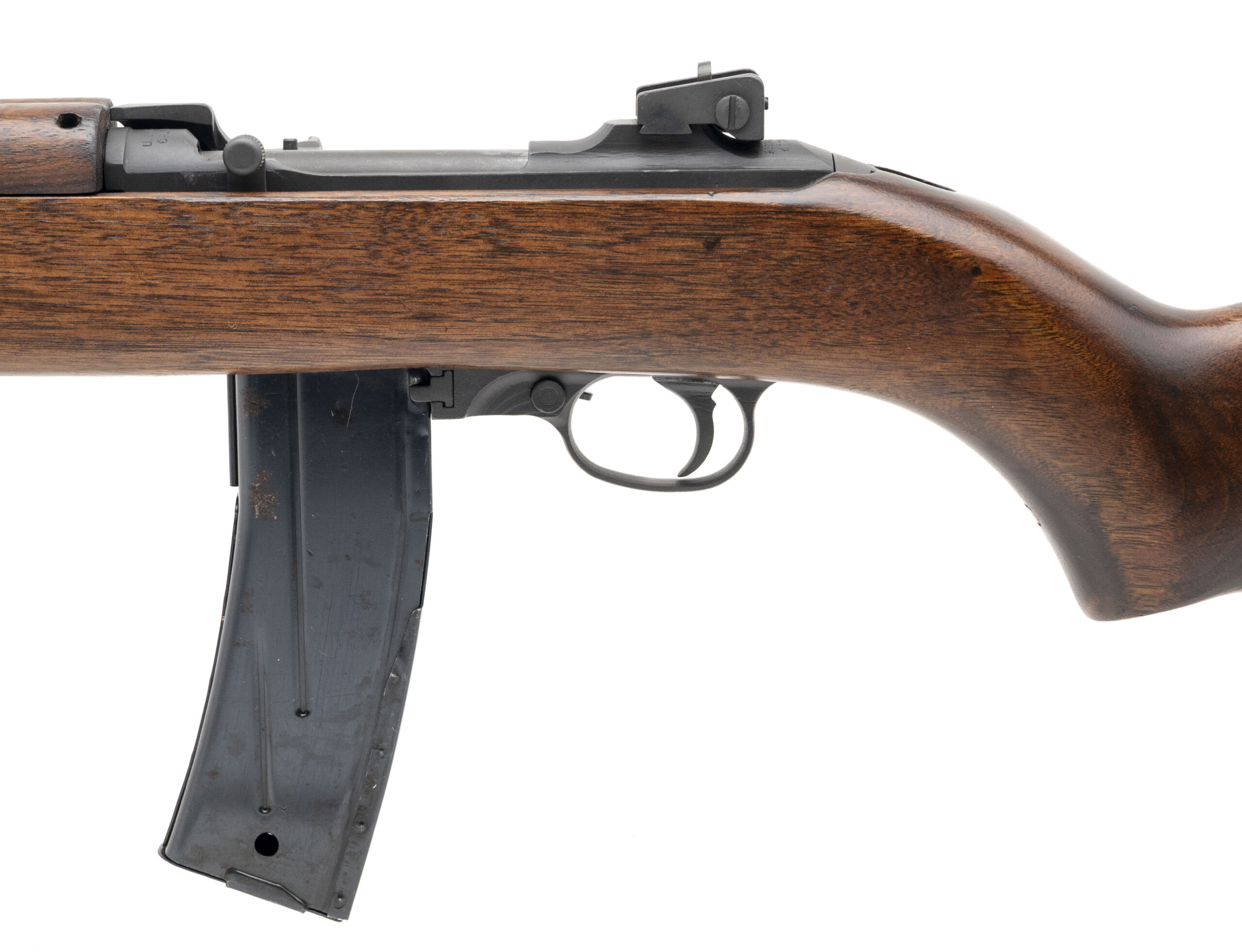 Serial No. 4120497, manufactured in late 1943, .30 Carbine, 18-inch round barrel dated 10-43. Bore is bright and shiny with strong rifling. Although it was made during World War II, this carbine was put through a post war arsenal level service life extension program rebuild, & that is why it is now equipped with a milled adjustable rear sight assembly, a flip safety, an M2 magazine release, an M2 round bolt & a Type 3 bayonet lug barrel band. An M2 disconnector that was registered by Sendra is in the gun & converts it to a transferable NFA machine gun. The M2 potbelly low wood oval cut stock remains in very good condition with light handling wear noted. Action is smooth and functions correctly. Comes with a spare M2 trigger group with an auto sear, M2 trigger & M2 hammer already installed. CLASS III ITEM / ALL NFA RULES APPLY.