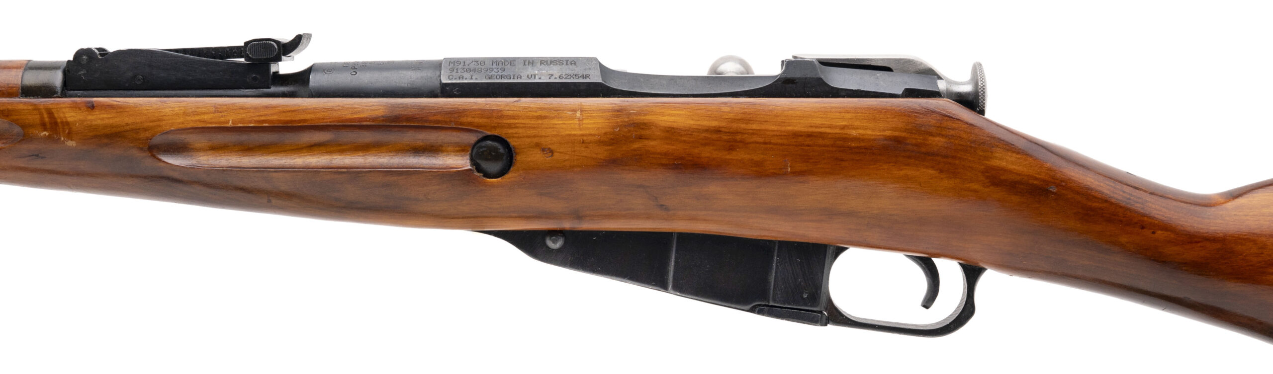 Serial No. 9130489939 (importer), made in 1927, 7.62x54R, 29” round barrel. Bore is good with strong rifling visible. Original serial numbers are matching, left side of the receiver is import marked. Overall finish and stock show light handling and storage wear. Action is smooth and functions correctly. Rifle comes with sling and bayonet.