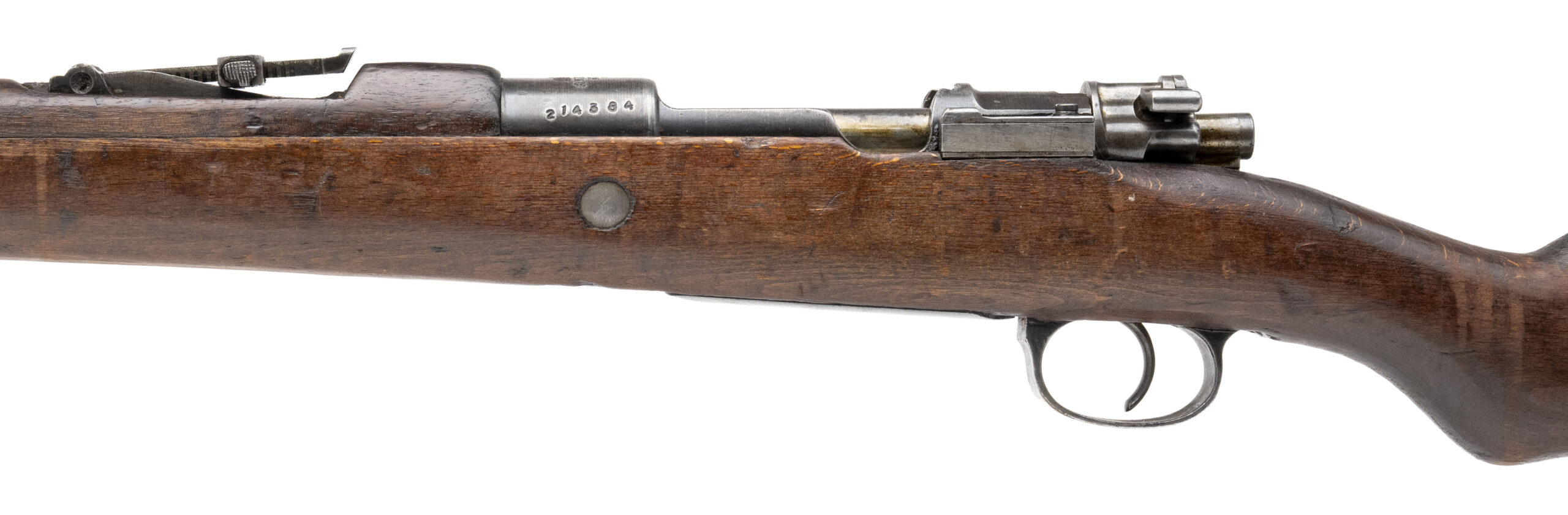 SN: 214384. 1945 year of production. Bolt action rifle chambered in 8mm Mauser with a 29" barrel. Bore condition is shiny and bright with sharp rifling. Metal condition has developed a grey patina. Wood has handling marks and is darker around the butt stock. Overall very good condition.
