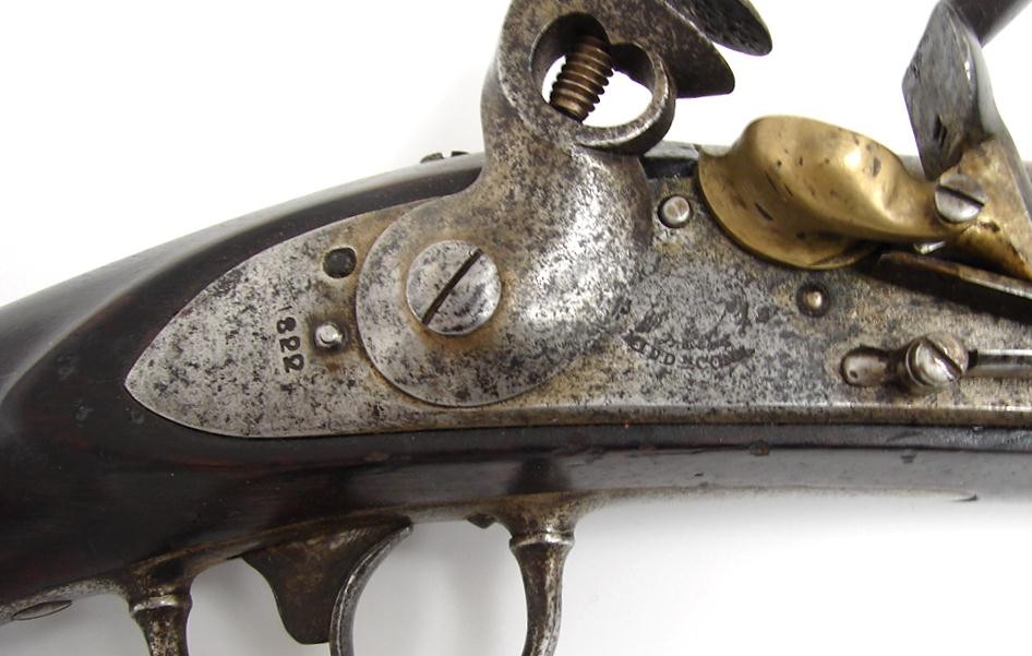 U.S. Model 1817 common rifle dated 1822. R. Johnson, Middn Conn. Good cartouche in stock. Good solid gun with fine pinpoint pitting evenly spread over the gun. Very good wood.