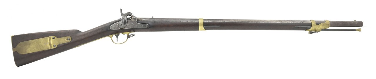 U.S. Model 1841 percussion “Mississippi” Rifle. By George W. Tryon of Philadelphia. The Mississippi rifle got its name due to its use during the Mexican-American War by a Mississippi regiment commanded by Jefferson Davis. The overall length is approximately 48½”. The 33” round .54 caliber barrel has a fine, bright bore with strong rifling. Barrel has a smooth brown patina, except in the bolster area where there is light pitting, and is marked “US/JH/P” at the breech. It also has small “H” sub inspection stamp on the left flat, side plate, and trigger guard. The lock has a gray patina. It has “Tryon/US” at the center and “Philada/PA/1844” at the tail. The hammer has most of its original blue finish. The bands, trigger guard, patch box, and buttplate show a nicely aged brass patina. The stock is very good with a scattering of issue/use dents and dings and a 1” missing chip on the left at the barrel between the bands. There are two strong cartouches and the spare nipple is in the patchbox. The two swivels and ramrod are present. The action functions correctly. Out of the approximately 91,800 Mississippi rifles, made by five manufactures, Tryon made the fewest, 5000. This is a nice example of a Mexican-American War Mississippi rifle made by the hardest to find manufacturer. It’s good for a Mexican-American War or Civil War collection.