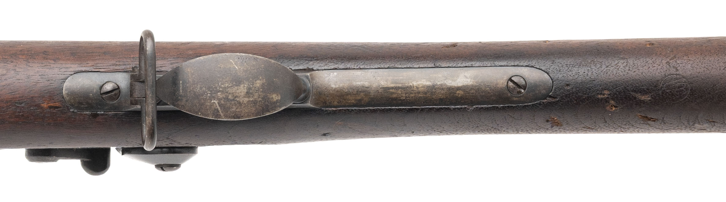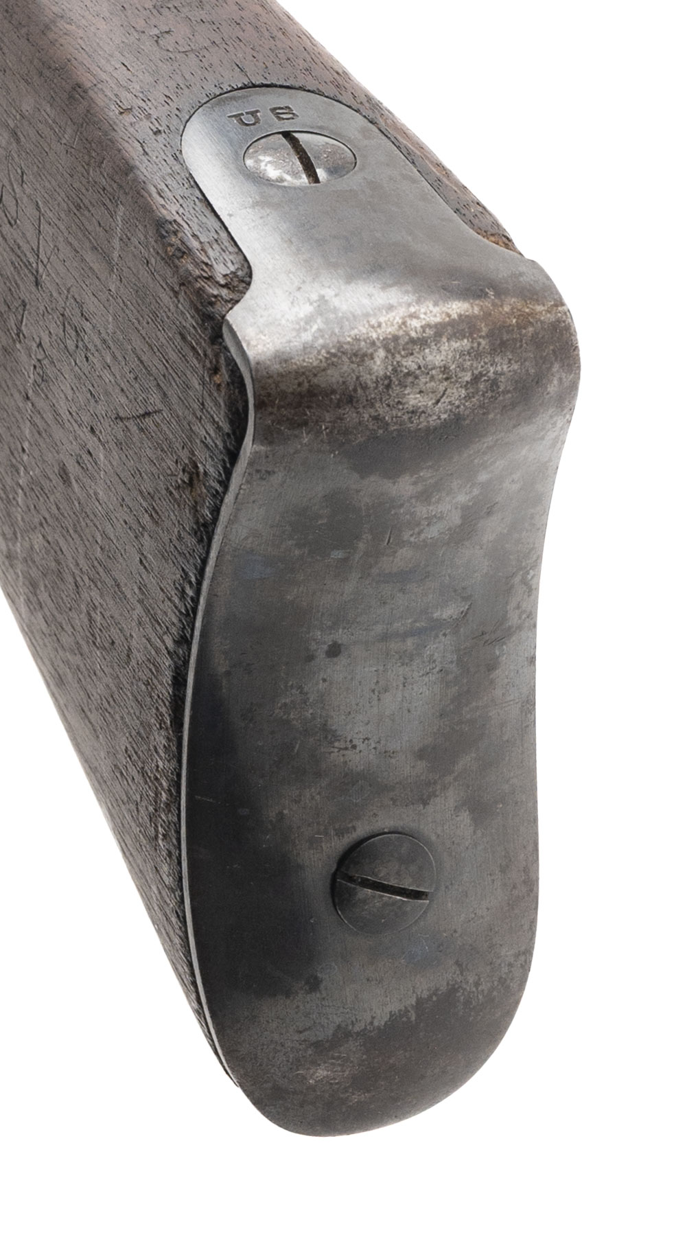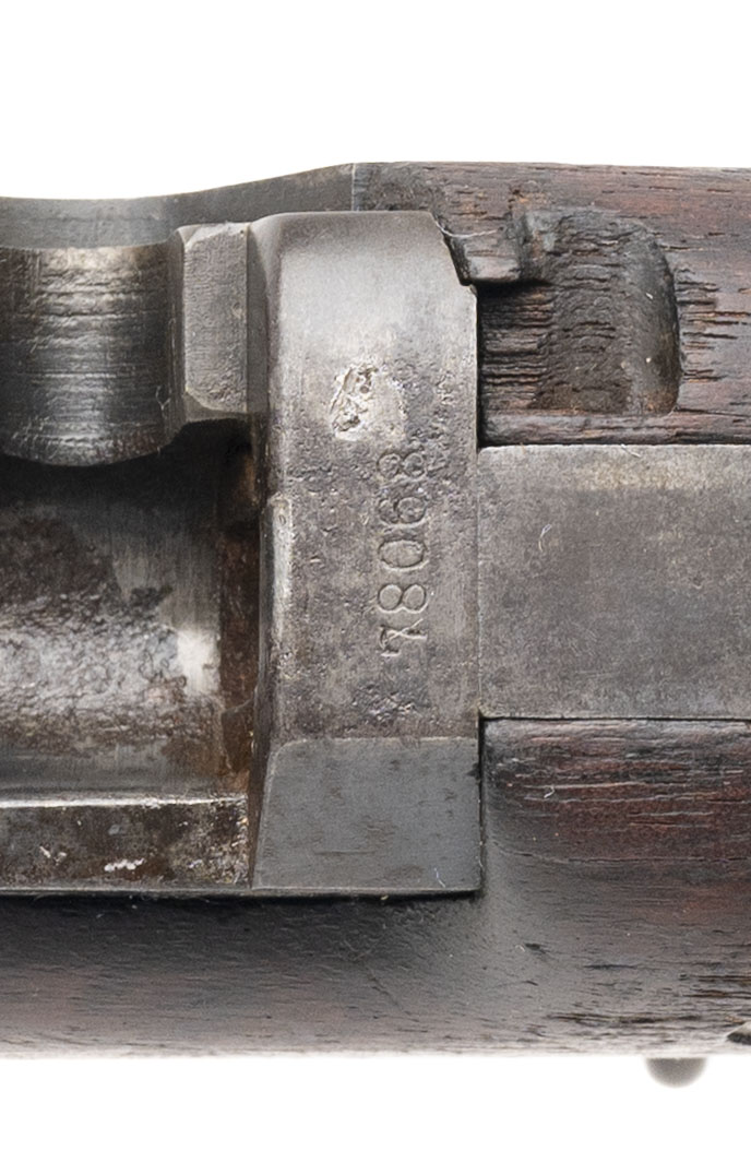 Serial No. 78068, manufactured circa 1878, .45-70 Government, 32½” round barrel. Metal has turned to a smooth brown patina. Rifle has been upgraded with the Buffington rear sight, as seen on later Trapdoor models. Stock is in good condition, bearing two visible cartouches—one dated 1891 and another appearing to be a Bannerman cartouche. Rear of the stock is stamped “GA.” Action is tight and functions correctly. A solid and historically interesting example of the Springfield Model 1873 Trapdoor rifle.