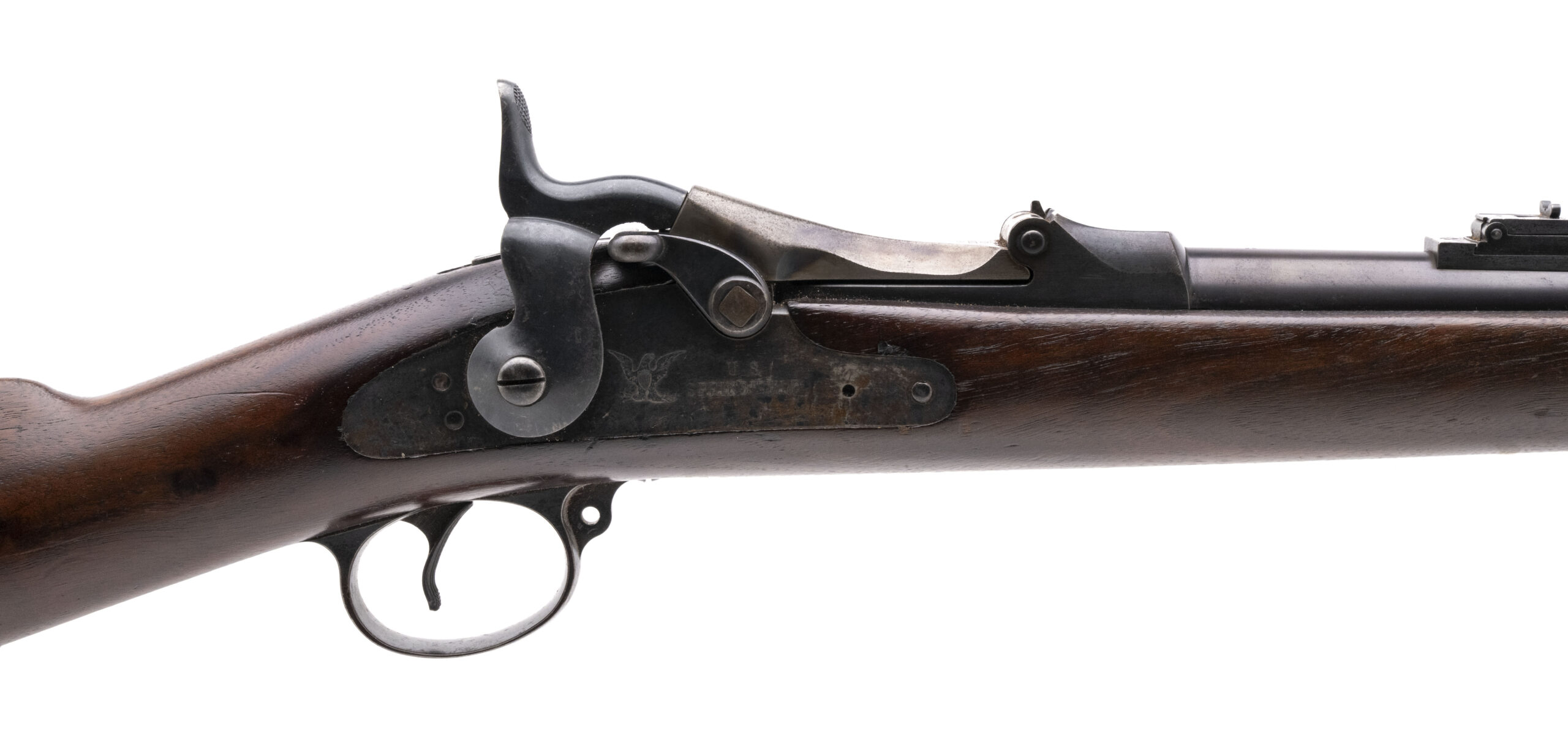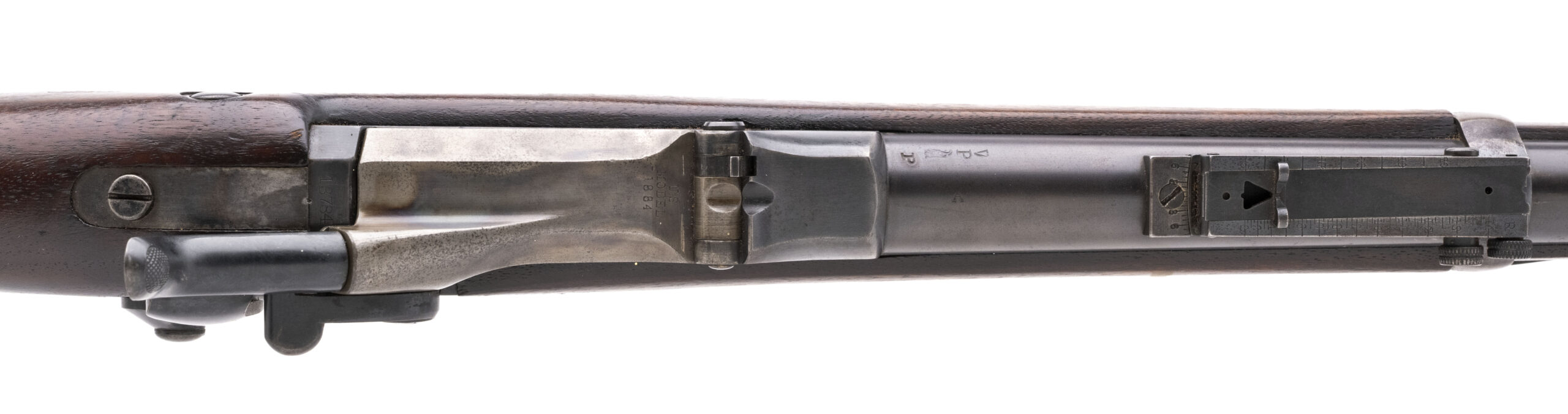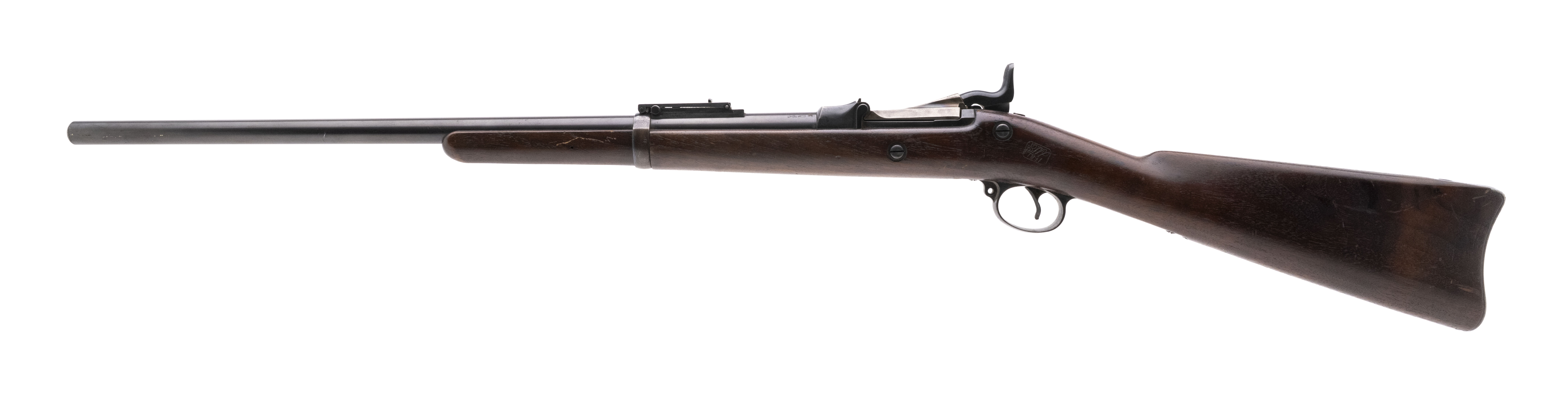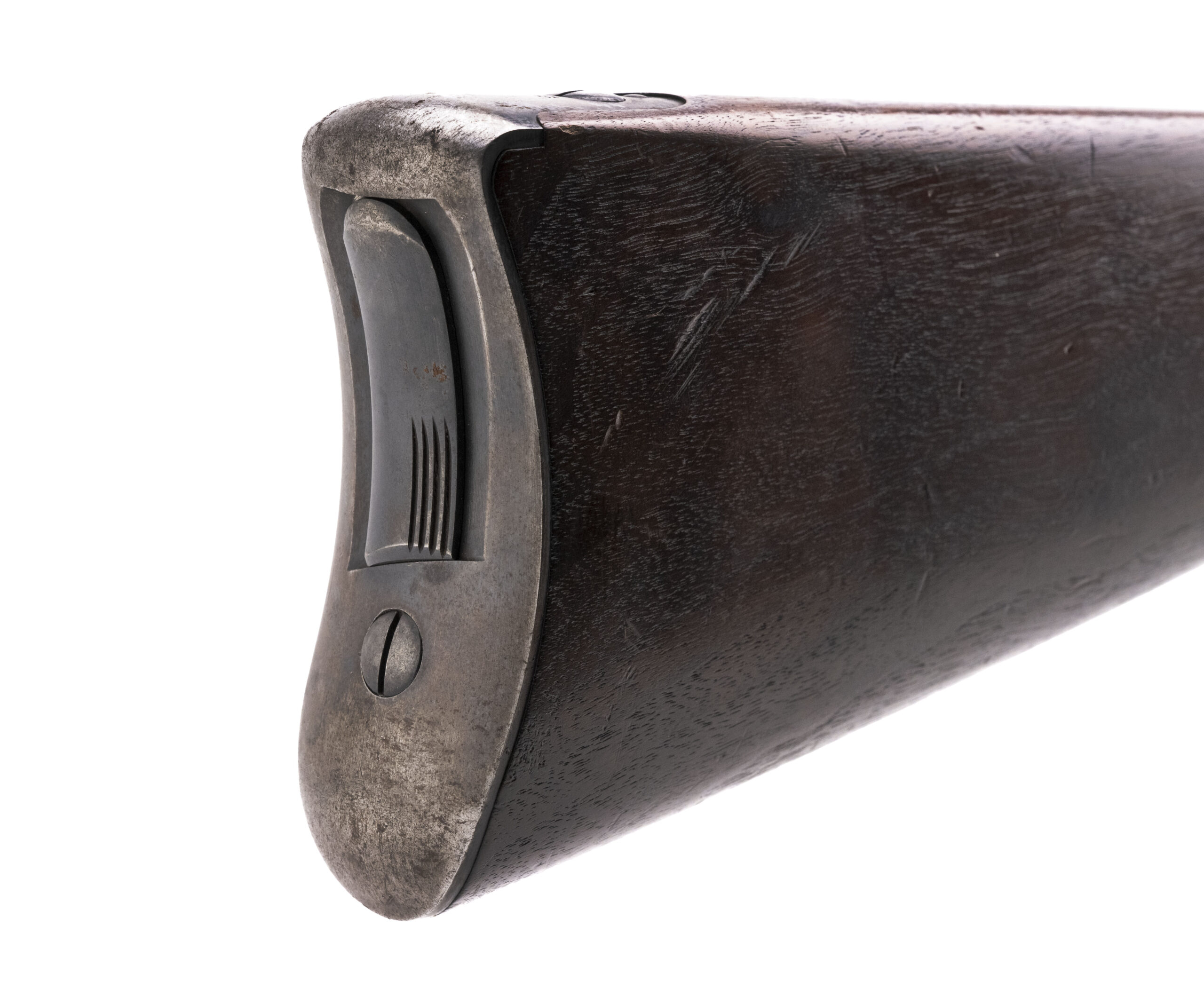 Serial No. 137845, made circa 1880, .45-70, 24.5” round barrel. Bore is bright with light oxidation visible in the grooves, rifling remains strong. Rifle has been sporterized into a hunting rifle with the barrel and stock being shortened. Beautiful case coloring is noted on the breech. Stock is very good with handsome 1891 cartouche noted. Action is smooth and functions correctly.
