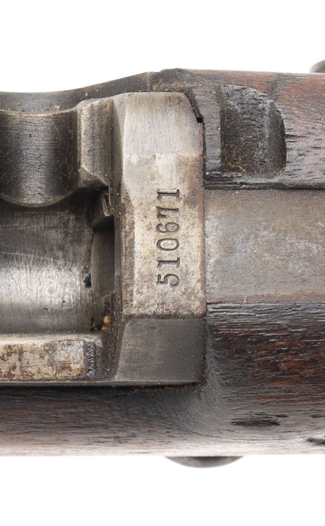 Serial No. 510671, manufactured in 1891, .45-70 Government, 32½” round barrel. Metal has developed a smooth brown/grey patina, with sharp factory markings on the barrel, breech, and lock plate. Stock remains in very good condition, showing only minimal handling marks. Action is tight and functions correctly. A clean and well-maintained example of the Model 1888 Trapdoor rifle, representing the final evolution of the Springfield Trapdoor series.