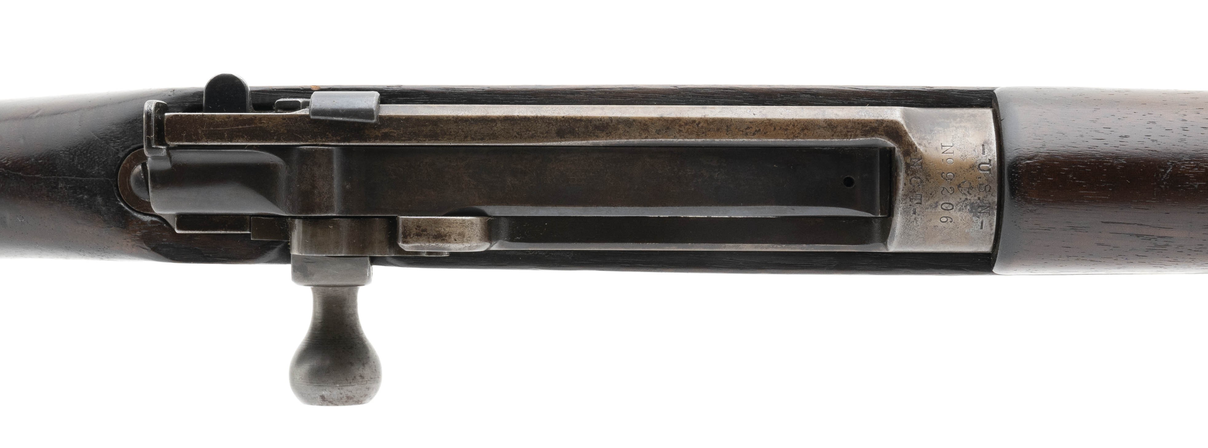 Serial No. 9206,made in 1897, 6mm Lee Navy, 28" round barrel, bore is good with strong rifling. Metal is a mottled grey patina, Stock has nicks, dings and minor scratches. Action functions correctly.