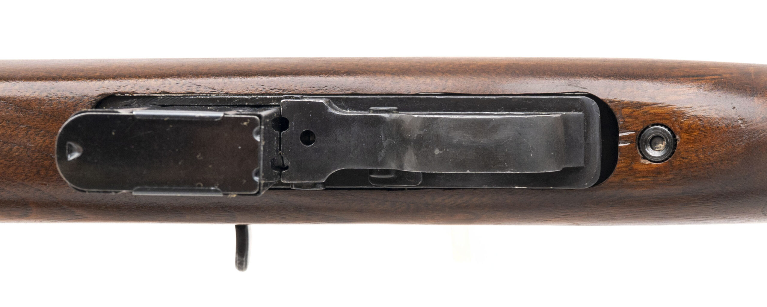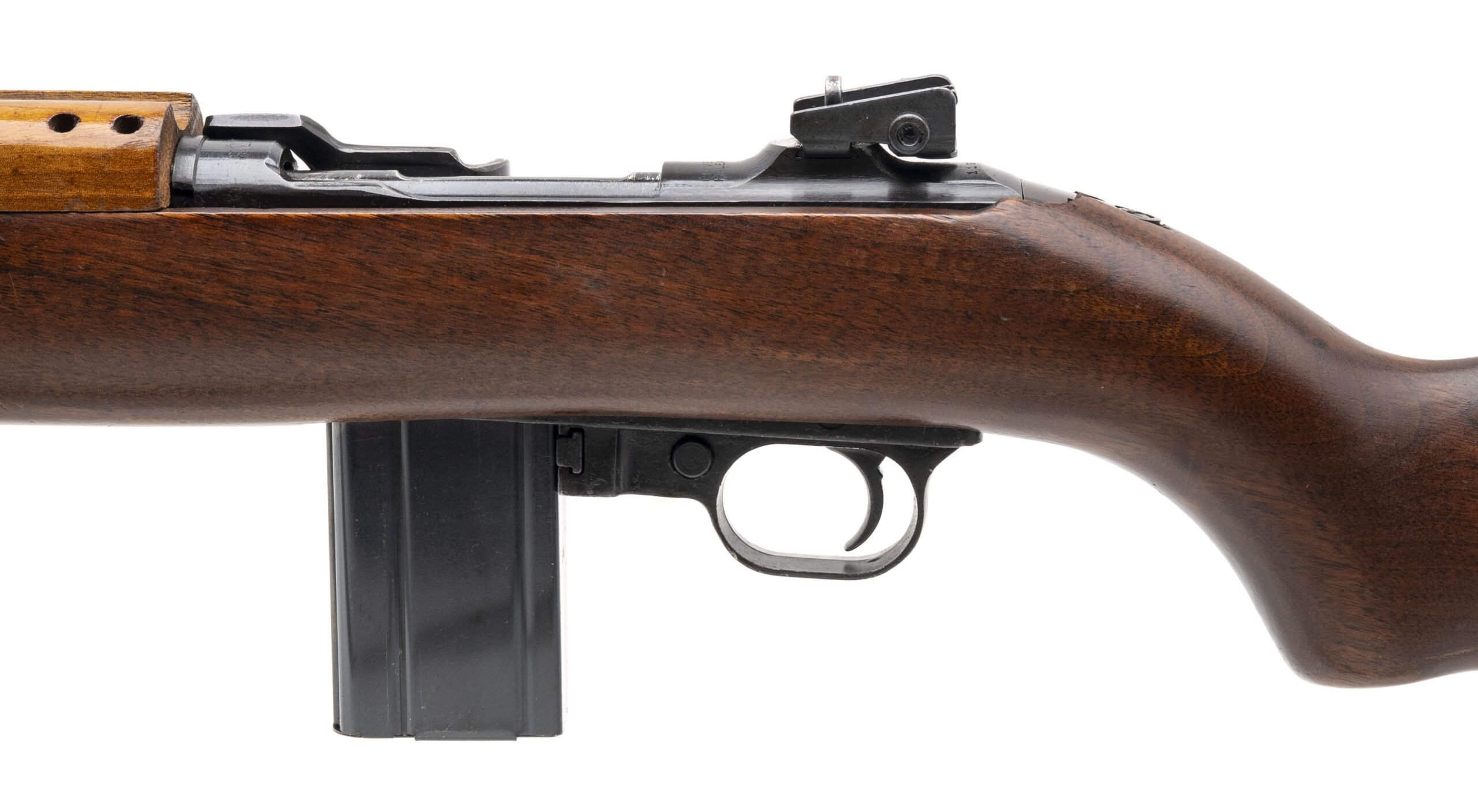 SN: 119274. 1970s vintage, .30 carbine with an 18" barrel. Bore is excellent. Semi-auto rifle with bladed front sight, adjustable aperture rear sight, blued finish, and wood stock. Finish is worn with marks throughout, with minor pitting to the front sight band & muzzle. Stock also shows handling wear with marks throughout. Includes sling. Overall condition is very good.