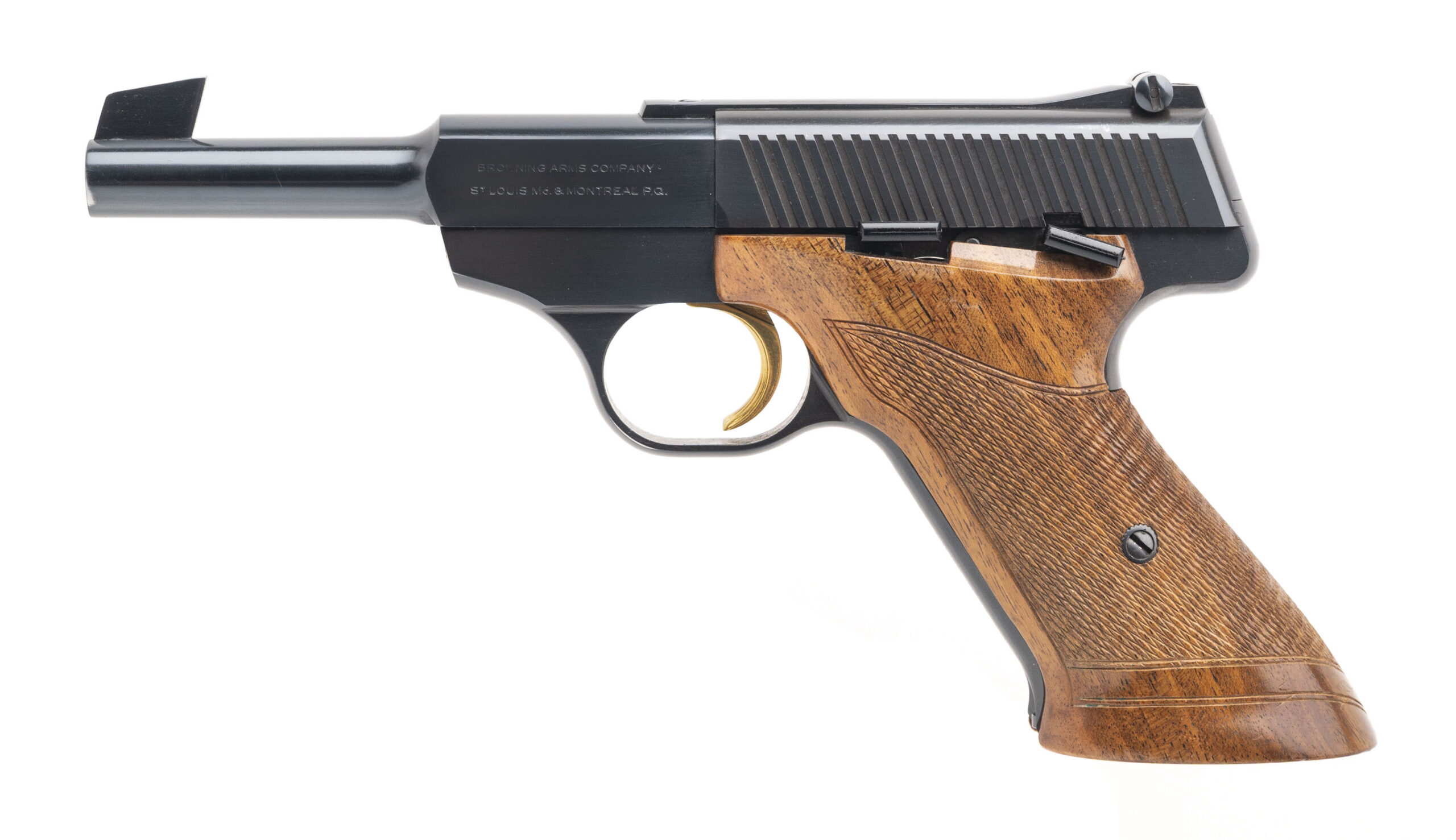 SN: 46277U5 . Made in 1974, .22LR with a 5 inch barrel. Belgian made .22 Auto with gold trigger and wood grips. Excellent condition. DALLAS LOCATION