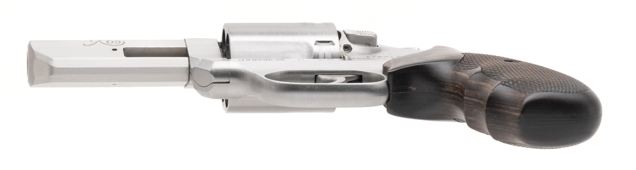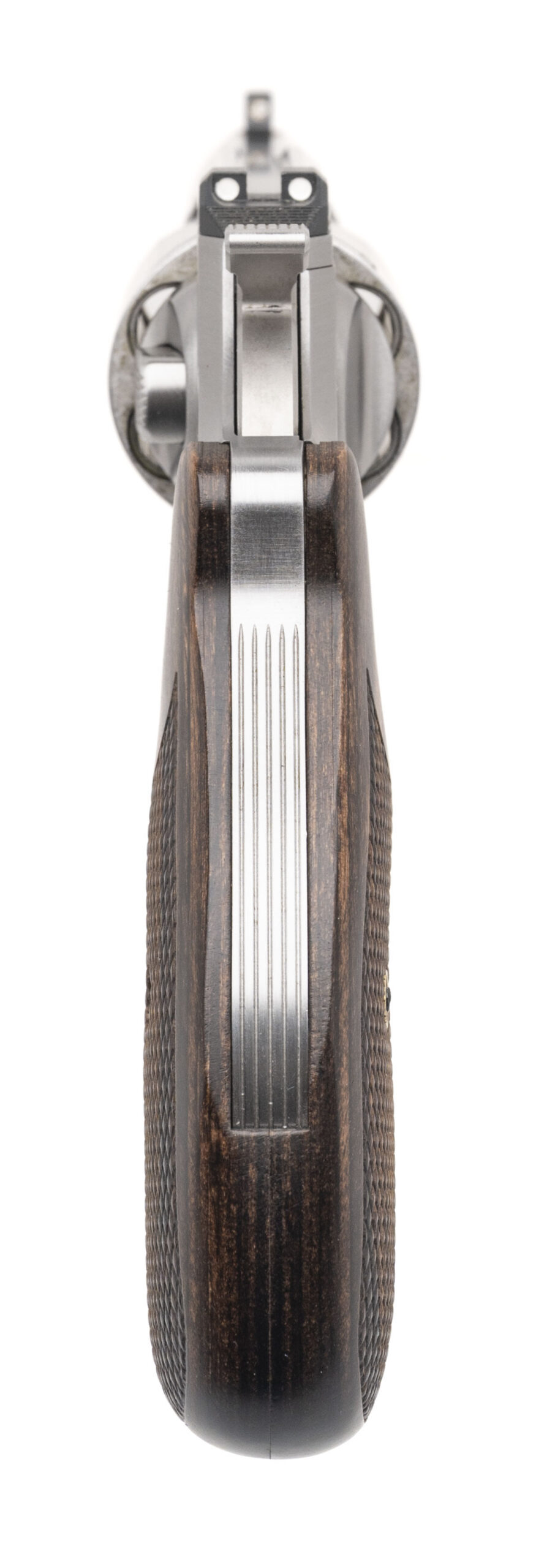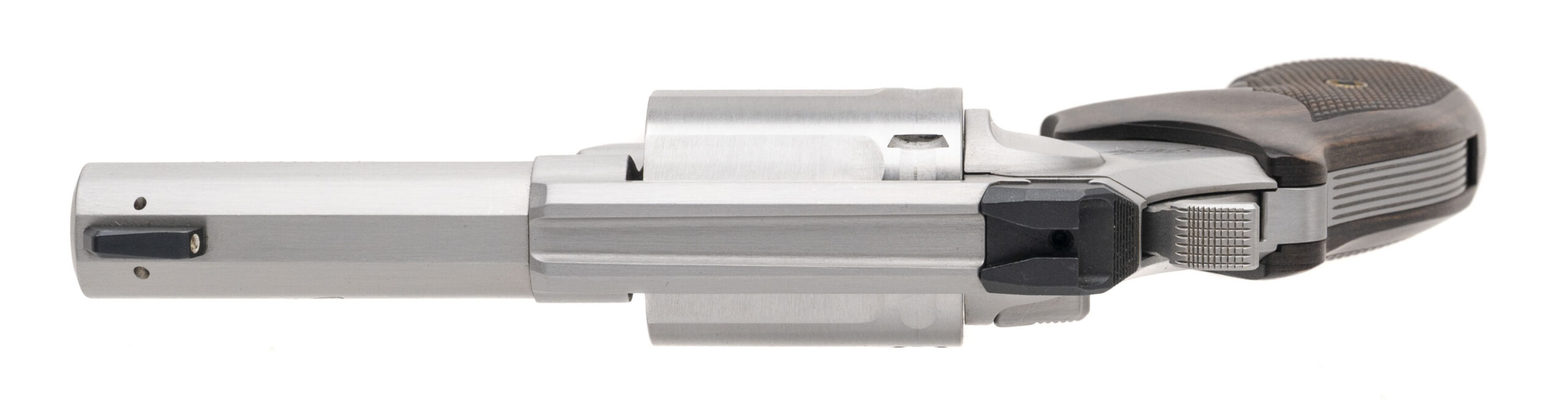 SN: RV090639. Modern production, .357 MAG. with a 3" barrel. Bore is very good. Stainless steel frame double-action revolver with 3-dot sights, 6rd cylinder, and checkered wood grips. Metal shows minor marks. Includes original soft carry bag, and original box. Overall condition is very good