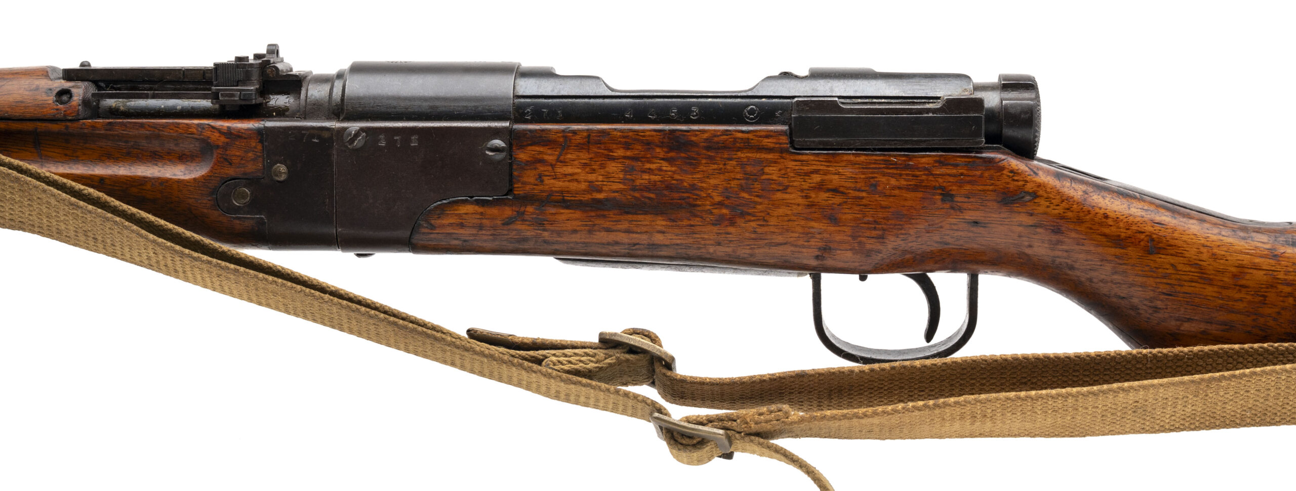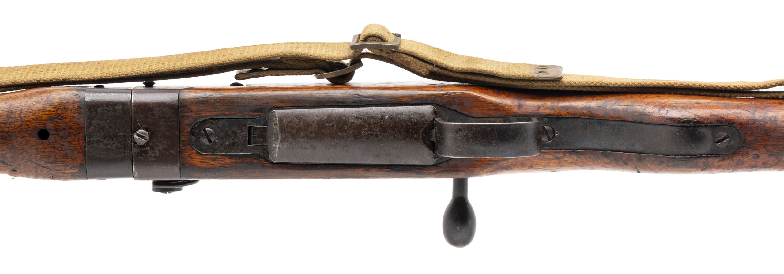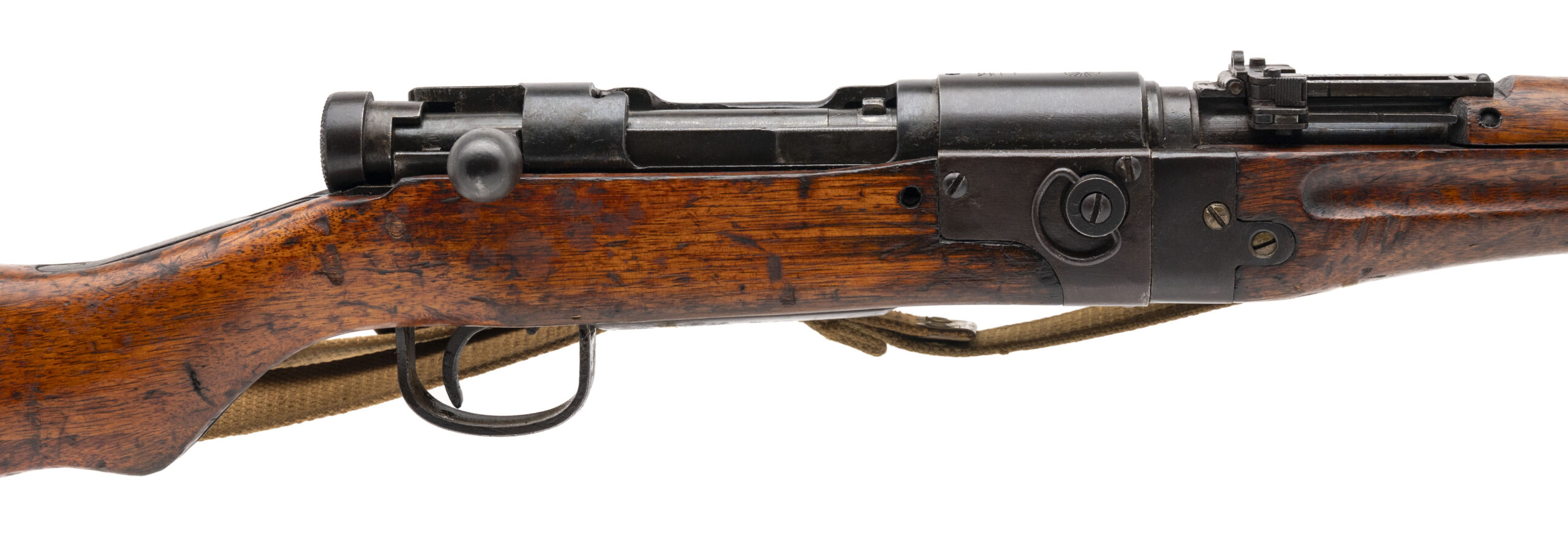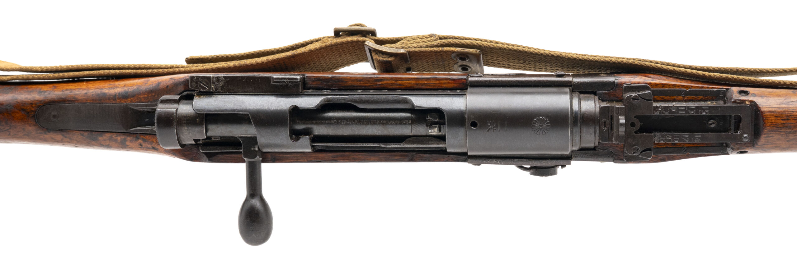 Serial No. 4453, manufactured circa 1943–1945, 7.7x58mm, 25½” round barrel. Serial numbers and part numbers are matching throughout. Rifle retains its imperial chrysanthemum (mum) and anti-aircraft rear sight wings. Metal shows a light service patina, and the stock displays expected handling marks and dings, reflecting honest field use. Action is smooth and functions correctly. A rare, all-matching Japanese Type 2 paratrooper rifle, highly sought after by collectors and increasingly difficult to find in complete, original condition.